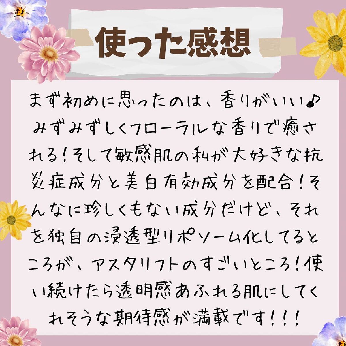 富士フイルムのリポソーム技術を採用した美白*美容液!◻️ASTALIFTザセラムブライトニング¥7,150(税込)紫外線以外にもマスクによる摩擦や乾燥、ニキビ、洗顔による摩擦やメイク落としによる摩擦など日常生活に潜む肌への刺激とシミの発生に着...