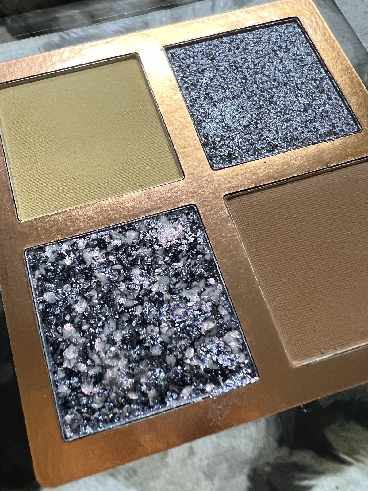 言わずともイエベさん推しなカラー✨ 粉質は言うまでもなく素晴らしい👏✨ カラーもふわっとしていてブラシでぼかしやすい😺 右下のミルキーなテラコッタがもー✨キレイ😻✨ダイコウブツ 3色がマットで1色だけラメなんですがこのラメがまた絶品✨✨🙀 デパコスのラメに負けず劣らず! シアーな感じの微細多色ラメがマットに花を添えます😻✨ 全体に乗せるのではなく真ん中に指付けでポンポンしてください😸 ラメとマットの遊びゴコロある目もとに仕上がります💕 今回のメイクで右下のテラコッタ?オレンジを下ラインですこし🤏入れましたが上に入れてもカワイイと思いますよ👍