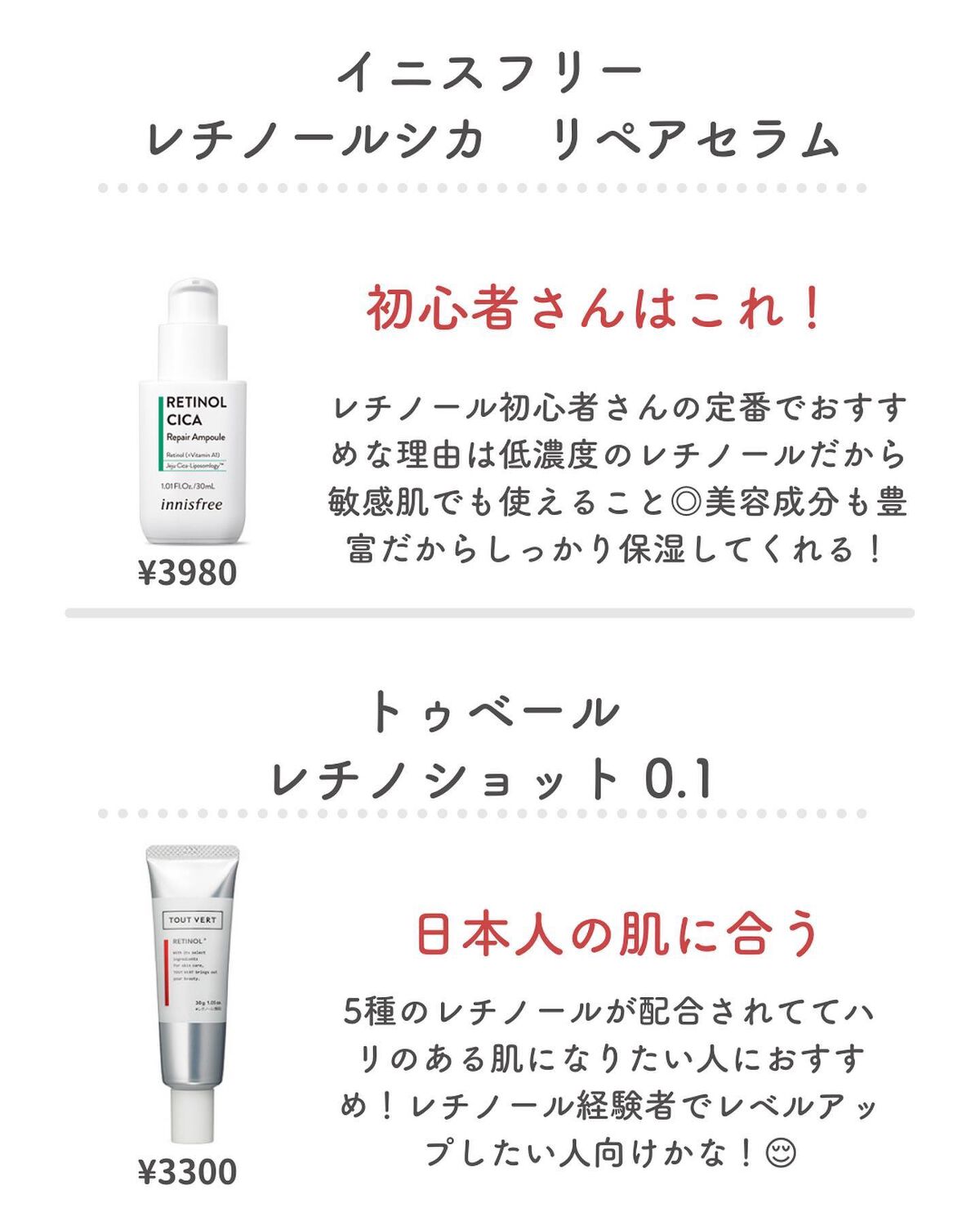 ・評判通り、刺激が少なくて使える初心者向けレチノールだった!! ・生理前や肌荒れしてる時など、肌が敏感になってる時は避けるのが無難 ・最初は他の化粧品の組み合わせとか考えてなかったけど、レチノールと合う成分、合わない成分を調べておかないと肌荒れする危険があった!!🔥😱 →ちなみに、ドクダミ・セラミド・ナイアシンアミドとかはおすすめらしい!