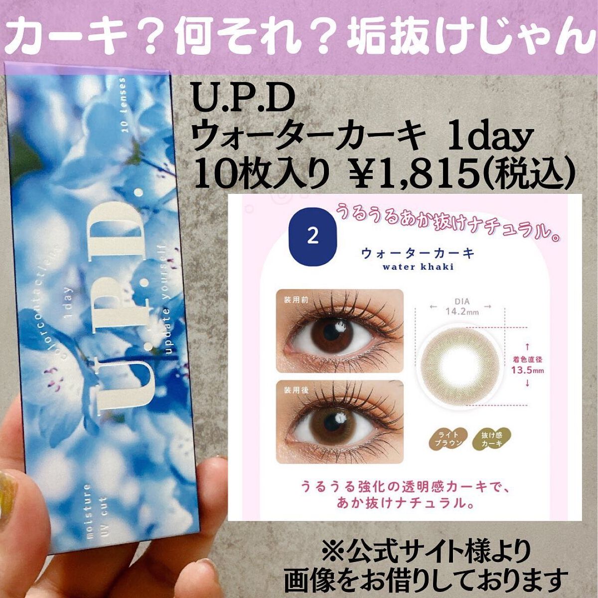 - 「毎日、過去イチかわいいわたし」ナチュラルだけどちゃんと盛れる"正解カラコン"U.P.D. (アプデ)。 もっと可愛く自分をアップデートして欲しいという思いを込めて作られたカラコンです。 ナチュラルな気分の時も盛りたい時も使える大人デザインとサイズ感がちょうど良いデザイン。 カラーコンタクトレンズの不適正使用による眼障害の危険性等などがあります。 ●コンタクトレンズは高度管理医療機器です。不十分な洗浄・消毒など不適切なケアや、長時間・交換期間を超えた装用により、アレルギー性結膜炎、角膜感染症、角膜潰瘍等の重篤な眼障害が発生する危険性があります ●ご使用前に取扱説明書を確認してください 使用上の留意事項 ●眼科医院等を受診してからお求めください ●眼に異常を感じたら直ちにレンズ使用を中止し、お近くの眼科等で診察を受けてください ●医師の指示にしたがってご使用ください ●コンタクトレンズを装用する場合、自覚症状がなくても、眼科医院等での定期検査を受けてください ●レンズに不具合がある場合は使用しないでください