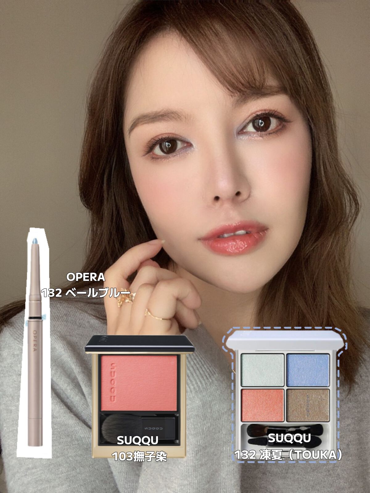 アイシャドウ パレット〈レ キャトル オンブル〉に、海から着想を得た78 リヴァージュが登場。パウダー表面には水面に浮かぶ波紋のようなデザインが。多彩な輝きとアズール ブルーが魅惑的な目もとを叶えます。 78 リヴァージュのブルーをポイントとして、良い現れるように、パウダーをのせる前に、operaアイライナー(ペールブルー色)を目の前半、または瞳の下もライを書います。