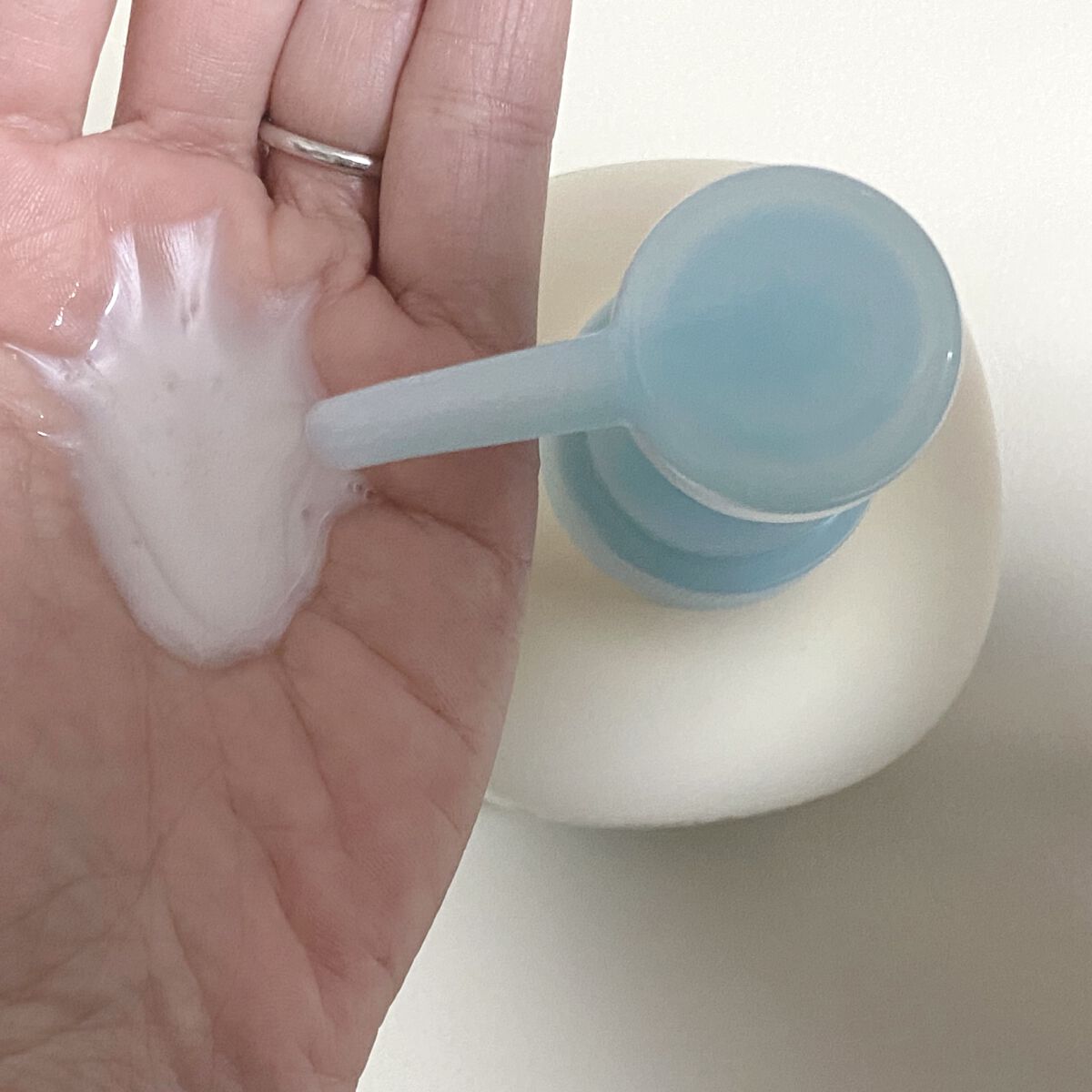 白いこっくりしたテクスチャーの美容液で香りはありません🤔 肌馴染みものびもよく、べたつきなくしっとりとした使い心地です🥰❣️ 敏感肌で肌荒れ・乾燥も気になる私には合っていて、とても気に入りました〜😍