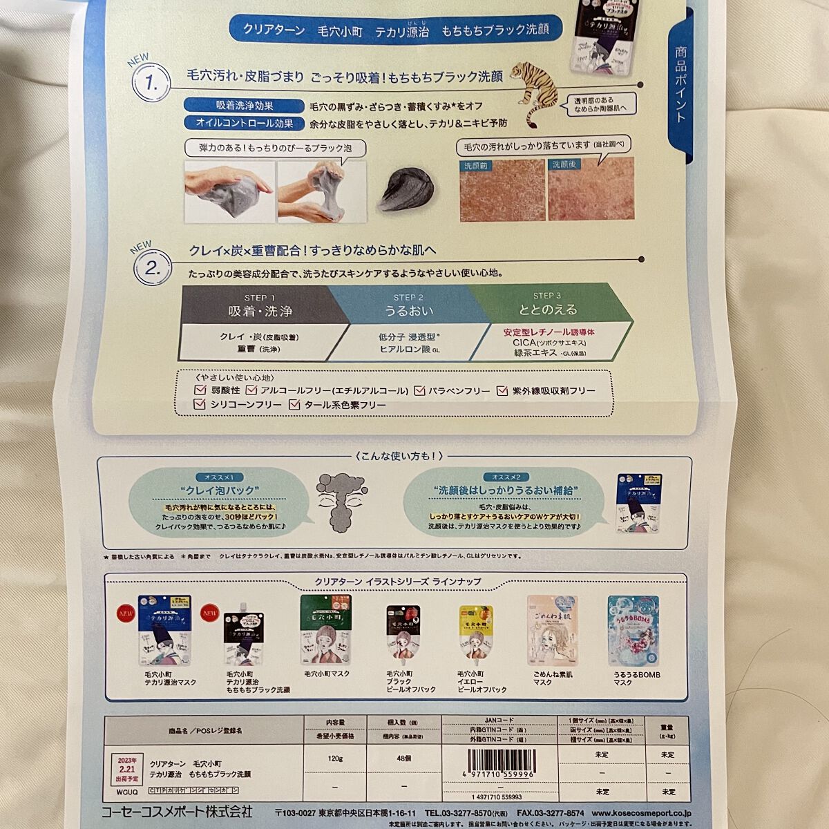 テカリ&毛穴目立ち&肌荒れにアプローチできるパックです☺️ 美容液もたっぷり153ml入っていて、パックも少し厚みのある凸凹のシートなんですけど、特に液だれしたり剥がれたりはしないです( 。•ω•。 ) 毛穴の黒ずみやざらつき・くすみをオフし、テカリケア&ニキビ予防ができるとのこと。洗顔ネットで泡立てると、弾力のあるもこもこ泡(逆さにしても落ちない)ができます( ^o^ ) 公式的にも、洗顔とパックのライン使いがオススメみたいです(^ω^) 特に可もなく不可もなくな感じですが、値段的にも使用感的にもなんかリピしちゃうな〜な商品でした🤣