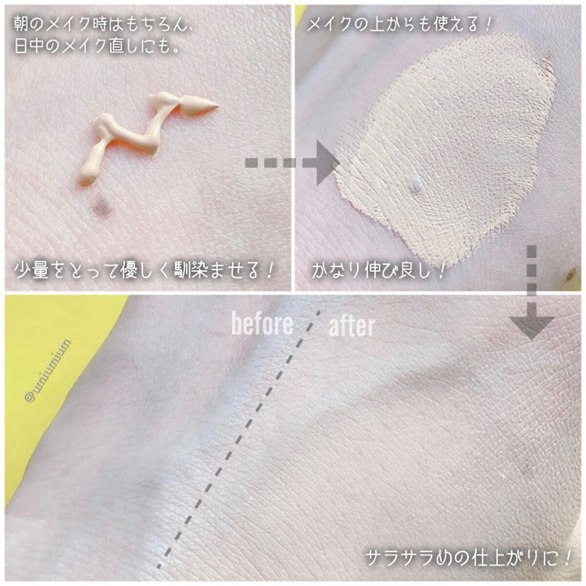 | テクスチャは滑らかでベタつかないのがとても良かったです!塗ったあとも想像よりさらっとしていて使い心地がよかったです! | 詳細を見る | ||