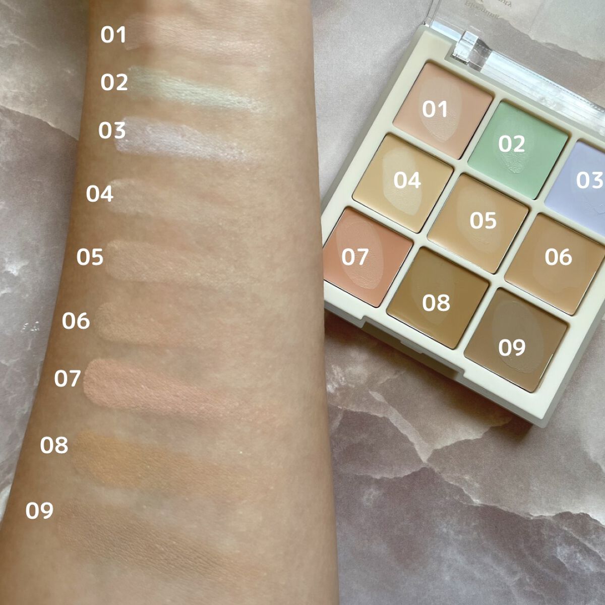 - 様々な肌トーンを考慮した9つのカバーシェードで全ての肌タイプの欠点をカバー補正してくれるカスタムコンシーラーパレット。 【Point1】様々な肌トーンと明るさを考えに入れた9つのカバーシェード。 【Point2】肌トーンに合う自分だけのカラーでカスタマイズ。 【Point3】反対色を活用したカラーコレクティングメイクアップ。 【Point4】浮きにくく密着感の高いしっとり&もっちりテクスチャー。