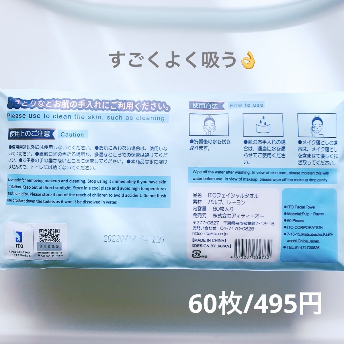 ITOフェイシャルタオル天然素材を使用お肌に優しく、柔らかいティシュタイプの使い捨てタオル✨️1枚づつ出てくるティシュタイプなので切り離しや連なって出てくることがないがない🤗洗顔後の顔拭き、汗拭き、手洗い後の手拭き、食後の口拭き、全身清拭、メ...