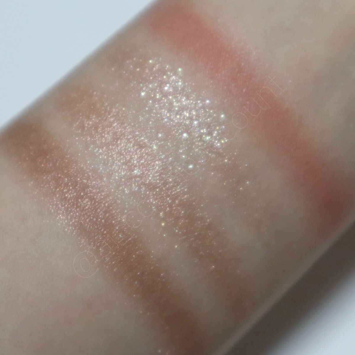 S[SHINY]“高輝度ガラスパール×カラーパールの美しいきらめき”↓S01.ピュアブロンズ“上品に艶めくブロンズゴールド” R[RICH]“リッチな高発色と繊細なツヤで色遊びを楽しめる”↓R01.バニラムスク“光を集めるハイライトベージュ” F[FLUFFY]“ふんわり・しっとりの新感覚 肌と同化するセミマット”↓F01.ラストナイト“血色感を潜ませるメロウなピンク”