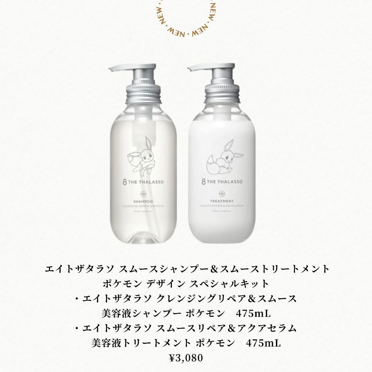 スキンケア発想の美容液ヘアケアブランド「8 THE THALASSO」から「ポケモン」のスペシャルデザインシリーズを数量限定で発売!! モイストキットはホゲータ&ピカチュウデザイン ちなみにスムースキットはクワッス&ピカチュウデザイン 毛先までしっとり!“ぷるん”と内側から潤うみずみずしい美髪へ導きます。