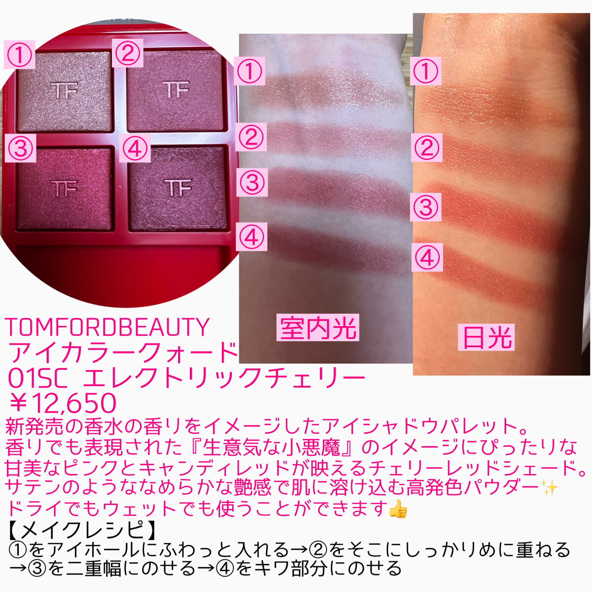 TOM FORD BEAUTYアイ カラー クォード 01SCエレクトリック チェリー限定色 エレクトリック チェリーの方が使いやすいかもです✨️ チェリーって名前のコスメ可愛いし、ちぇりちゃん好きだなーって思い、投稿しました🤣