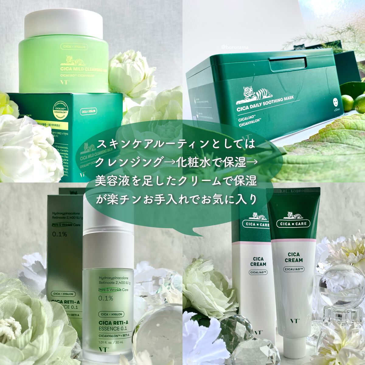 VTCICAレチAエッセンス0.5で、毛穴レスなキメ肌を目指す✨私はレチノールリピ使いなので「中レベル」の0.5%です。私の使用感・効果テクスチャー:みずみずしくて、肌になじませるとべたつきがなくさっぱりとした使い心地がお気に入り。肌の変化:...