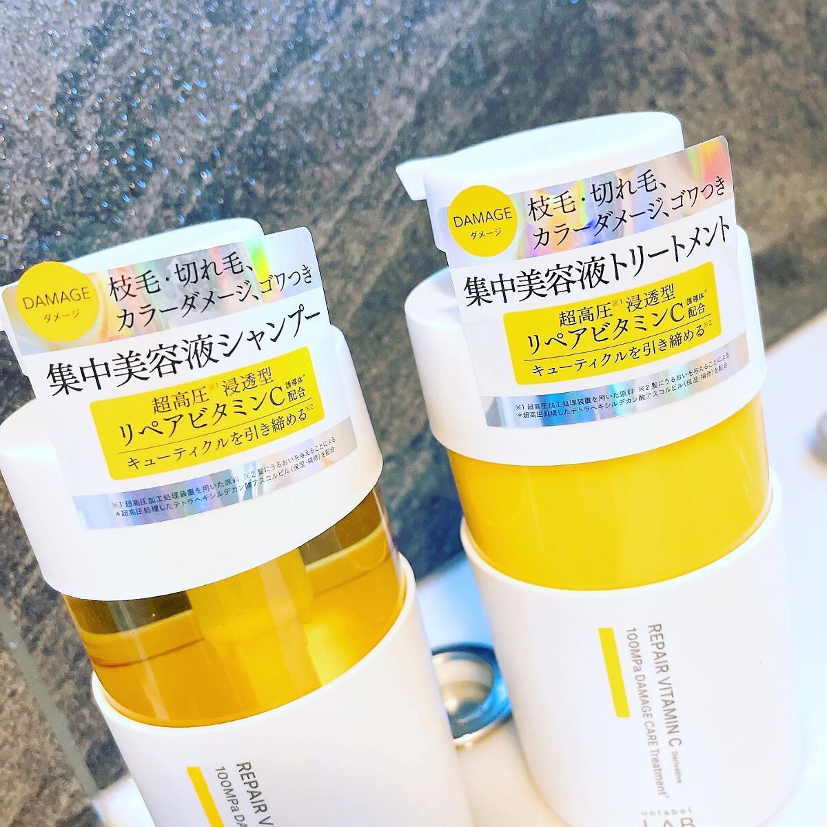 - <シャンプー> ビタミンC*2の濃密泡でダメージ髪を補修。洗うたびにキューティクルを引き締め、ツヤのある、なめらかな髪に導く集中美容液シャンプー。 <ヘアトリートメント> ビタミンC*2の濃密補修でダメージ髪を補修。流すたびにキューティクルを引き締めながら保護しツヤのある、なめらかな髪を維持・持続させる集中美容液トリートメント。 *2超高圧処理したテトラヘキシルデカン酸アスコルビル(保湿・補修成分) 2023年2月4日(土)より一部バラエティショップ、ドラッグストアにて先行発売。2月19日(日)より全国のドラッグストアにて順次発売
