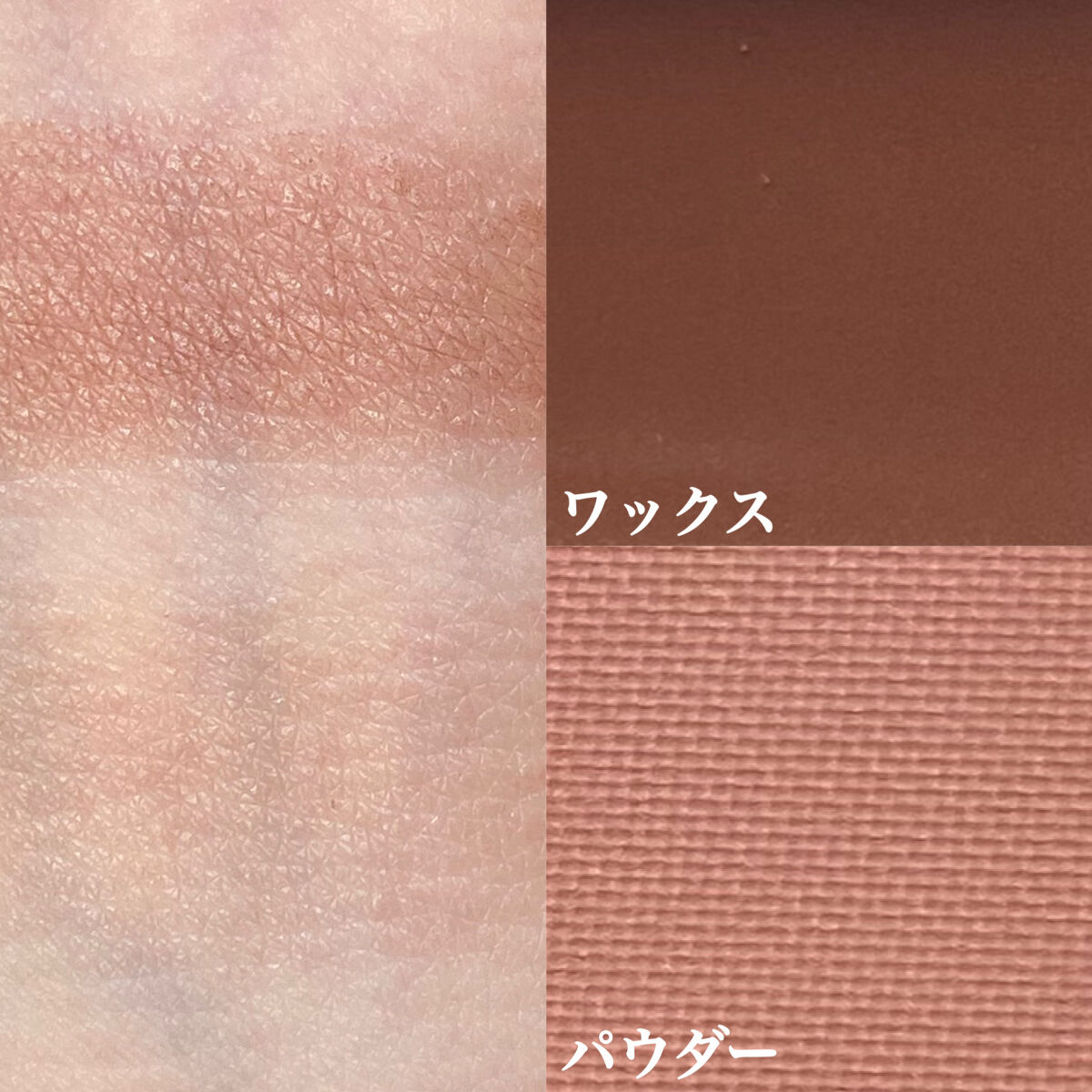 - ワックス×パウダー 異なる質感で作るふんわり立体眉 ワックスベースとパウダーベース、2つの異なる質感・発色を重ねることで、 絶妙なニュアンスを生み出しまるで本物の眉のような仕上がりに。 ワックスベースの上にパウダーベースを重ねることで、密着力がUP! メイクしたての仕上がりをキープできます! ◆ワックスベース◆ しっかりと発色する濃いめのカラーは、眉毛の隙間を埋めつつ眉の形を整えます。 ワックスなのにベタつかず、毛の立ち上がりをしっかりキープ。毛流れを感じる眉に仕上がります。 ★伸びが良くムラになりにくいため、初心者さんでも描きやすい! ◆パウダーベース◆ ふんわりと発色する淡めのカラーは、眉に奥行きが出て、立体的に仕上がります。
