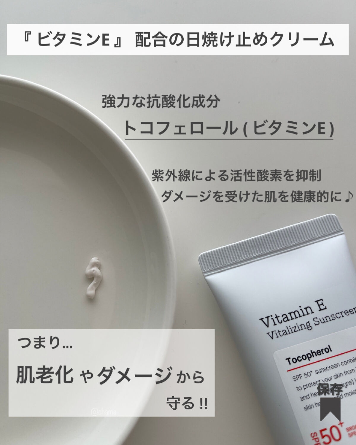 - ★肌を守るために重要な「日焼け止め」 ・ビタミンEバイタライジング日焼け止めクリームSFP50+は、肌に負担の少ない使い心地で、 保護成分が配合され紫外線をしっかりにカットすることが臨床的に立証された日焼け止めクリーム ・メイクの下地にも使えます。 ・お肌に優しい使用感。 ・皮脂を抑えてくれるため、べたつかないのに乾燥もしにくい、不快感のないつけ心地です。 <成分> ビタミンE配合 (整肌成分) <使用感> 肌に塗った後素早く馴染み油分感なく軽くさらっと仕上がる。 <効果> 肌を保護する・皮脂バランスを整える