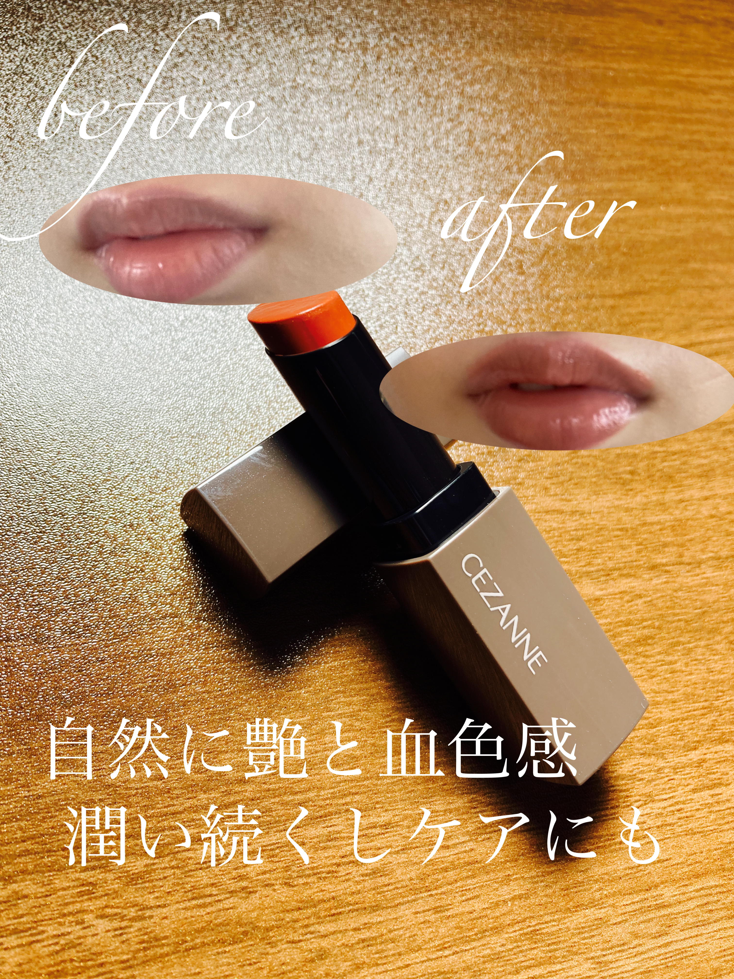 唇潤う〜☺️カッサカサの唇の私ですが、しっとりもっちりなりました😁 色も、色補正と書いてあるように、口紅のような強力な色はつかないのですが、健康的な唇の色になれます✨✨ 校則が厳しめの学校でも分からないくらいの色味で、ふつーに健康的な色に見えるので、学生さんにとっては安心だと思います😁 また、口紅を塗る前の下地として塗ってもいいと思います😁 マット系の口紅を塗るときに使ってみましたが、こちらを塗ったらいつもよりも色味が綺麗に見えましたし、固まる事なく、するする塗ることができました❗️ 唇に塗ってる感は出したくないけど、綺麗に見せたい時にはもってこい!のリップだと思います😍