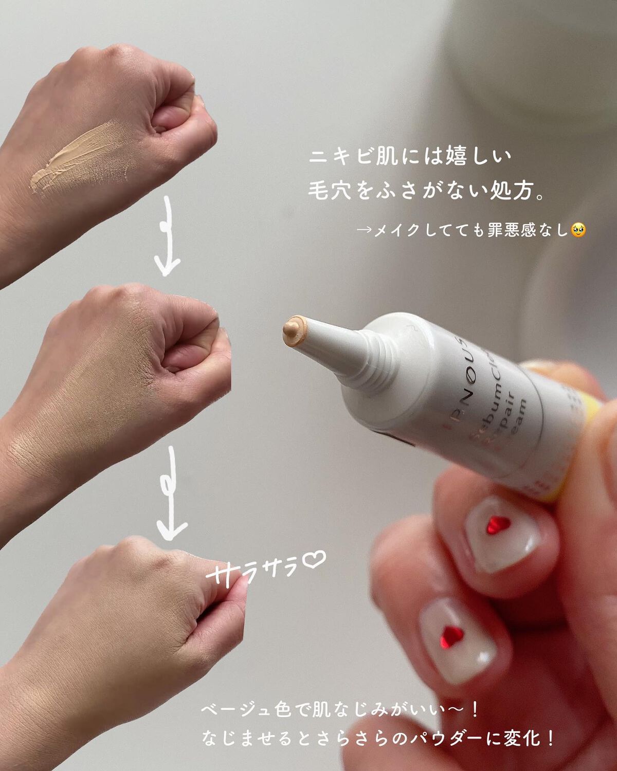 - 隠すことは、防ぐこと。 ニキビを忘れる※1、ベージュタイプの薬用リペアクリーム。 赤み・ニキビ跡・色ムラを自然にカバーしながら、予兆にアプローチ 毎日のケアで、ニキビを未然に防ぐ、そしてシミにしない※2 肌に自然になじむベージュタイプ。 有効成分 イソプロピルメチルフェノール、グリチルリチン酸ジカリウム、ビタミンC誘導体配合。ニキビ・肌荒れ・シミを防ぎます※2。 のびの良いクリームが、塗布した瞬間にサラサラのパウダーに変化するウォーターインシリコン処方採用。毛穴をふさがず、肌に負担をかけません。 赤み・ニキビ跡・色ムラを自然にカバーする色設計&ソフトフォーカス効果。ファンデーションを重ねてもキレイに仕上がります。 肌コンディションをすこやかに保つ、整肌・保湿成分「ユキノシタエキス」「アーティチョークエキス」配合。 ※1カバー効果による ※2メラニンの生成を抑え、シミ・ソバカスを防ぐ ■色素が直接肌に触れない独自技術PV技術を採用。 ■低刺激性・無香料・アルコール(エタノール)フリー・アレルギーテスト済・パッチテスト済・ノンコメドジェニックテスト済 (すべての方にアレルギー・肌トラブルが起こらない、ニキビのもと(コメド)ができないというわけではありません。)