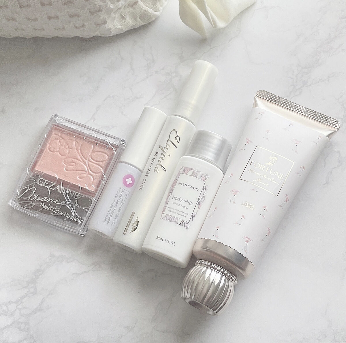 ぷくっとした立体感のあるハート型がまず可愛い。 ナチュラルな血色感大好きな私はドンピシャでした、、使いやすくて失敗しないチーク。 ひと目見て絶対買わなきゃと思った色。 こんなの可愛すぎる、透明感のあるモーブカラーは最高でした。 主張しすぎない華やかラメがお気に入りのアイシャドウ。 とくに左上の淡いピンクが好きすぎて今は底が見えそうです。お値段以上でラメ飛びもしないので大好き。