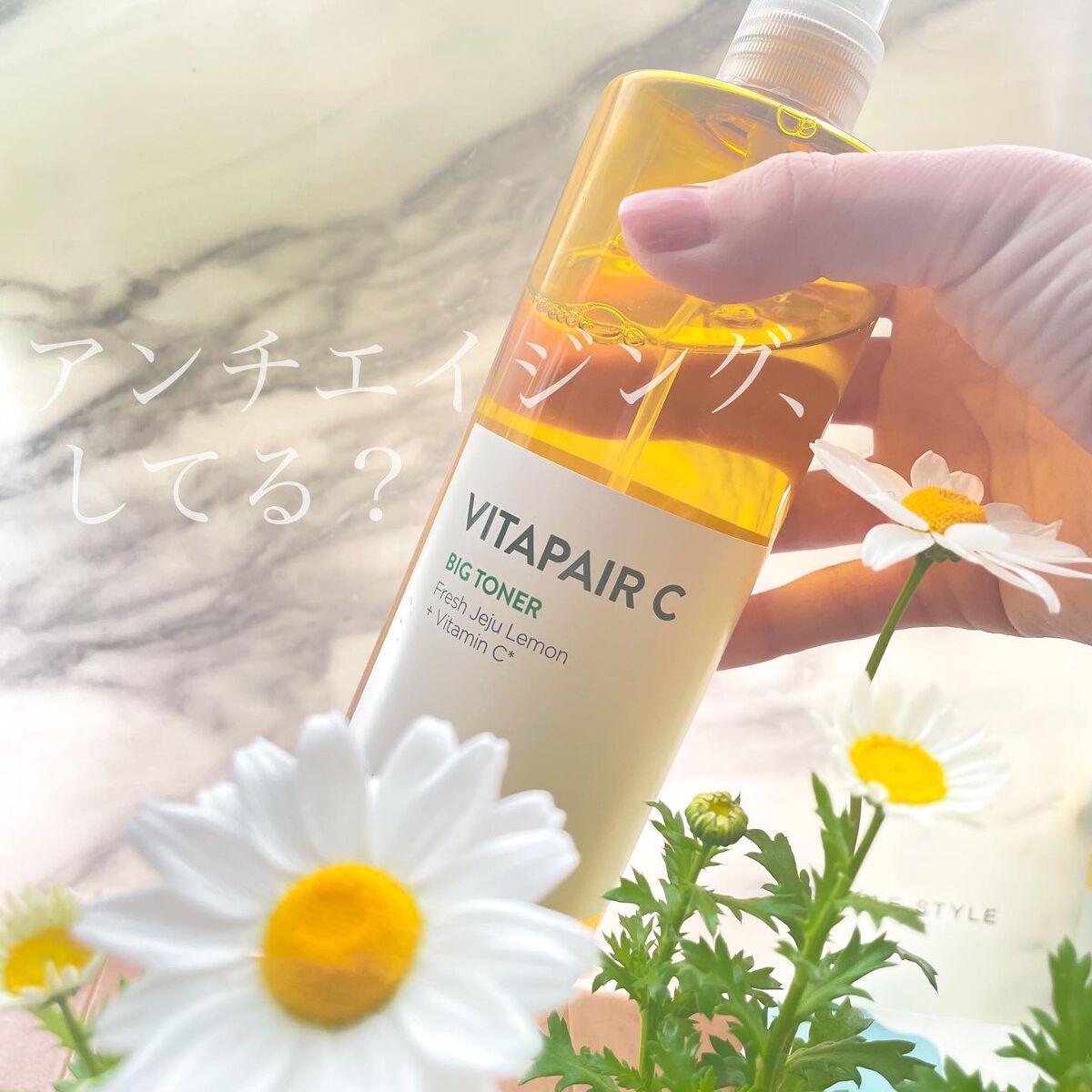 - <ビタペアCビッグトナー> 水、BG、レモン果実エキス、グリセリン、ナイアシンアミド、プロパンジオール、ペンチレングリコール、アスコルビルリン酸Na、アスコルビン酸、ツボクサエキス、クエン酸、ビフィズス菌培養溶解質、ラクトビオン酸、トチャカエキス、サトウキビエキス、クロレラエキス、フルクトオリゴ糖、エチルヘキシルグリセリン、カプリリルグリコール、1,2−ヘキサンジオール、コレス−24、グルコース、ベタイン、フルクトース、カルボマー、トロメタミン、EDTA−2Na、キサンタンガム、ベタインサリチル酸、トコフェロール、パンテノール、アラントイン、香料