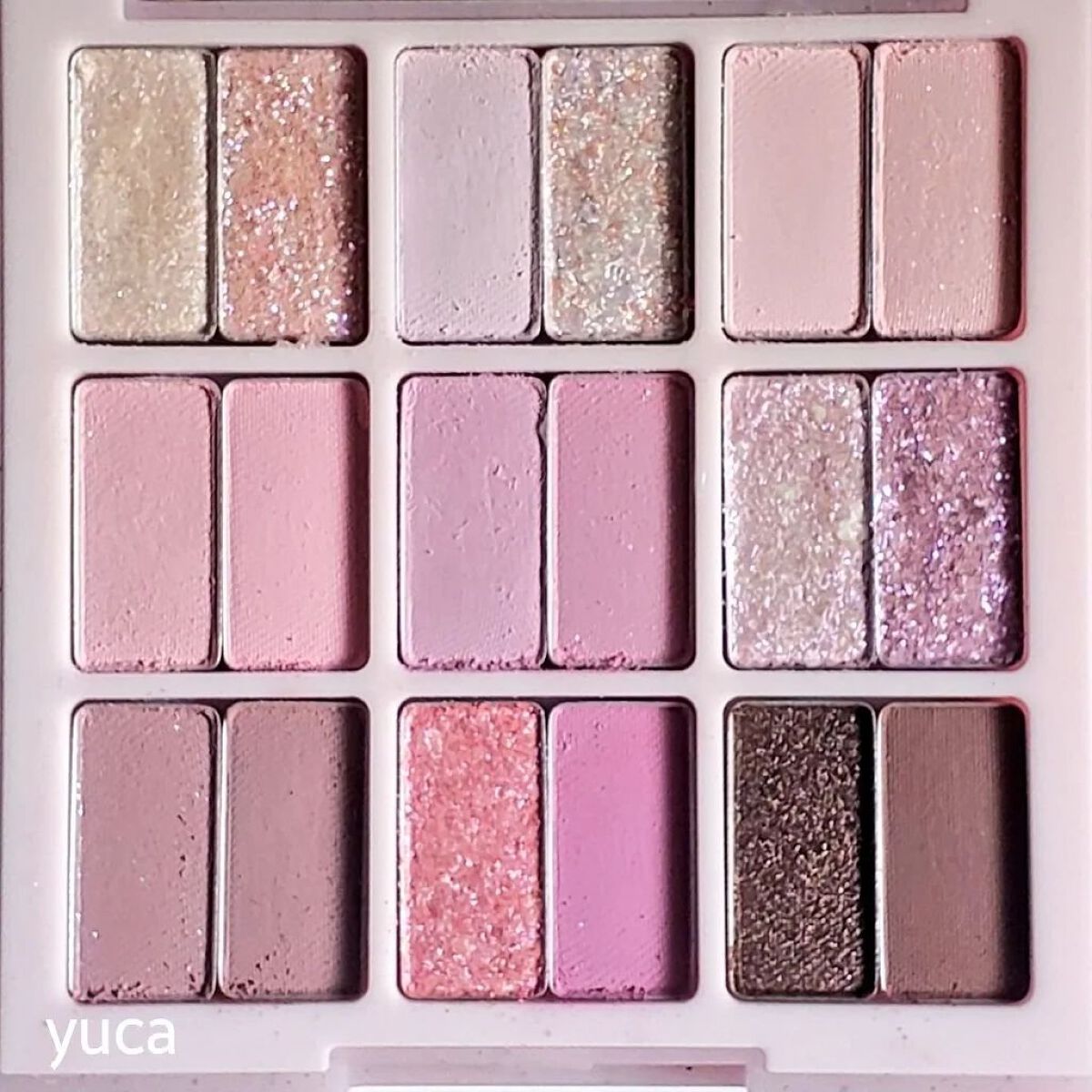 控えめのツヤ感でキメの細かい整いを演出する マットシャドウ!軽やかに光り上品さとわずかなキラメキを演出する シマーシャドウ! 湿式タイプでしっとりした感触で発色が抜群の グリッターシャドウ!いずれも捨て色なく多様なテクスチャーのシャドウ構成で飽きずに使えるパレットです。 めちゃくちゃ可愛いカラバリ♥️ グリッターもピタッと密着していいカラー マットも優しいカラーだから派手にならない!