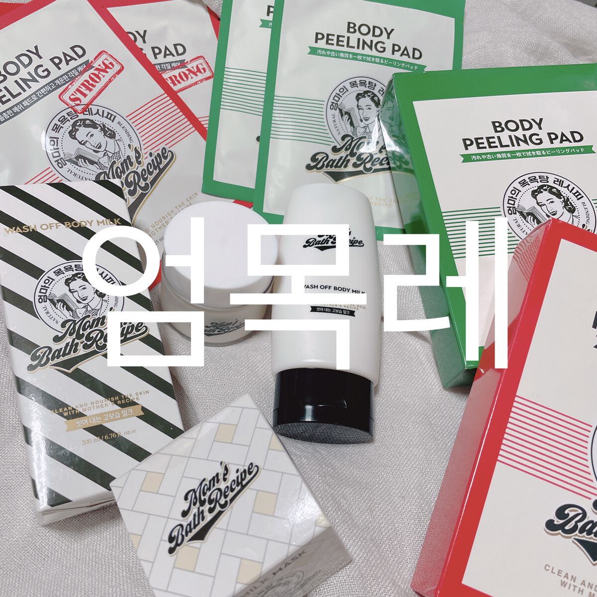 洗い流すタイプの珍しいボディローション!マムズバスレシピという韓国コスメブランドです。 出し口が下向きで置いておけるので量が少なくなっても中身がすぐ出せるのが便利です。 なによりお風呂あがりに何も塗らなくて良いので便利。