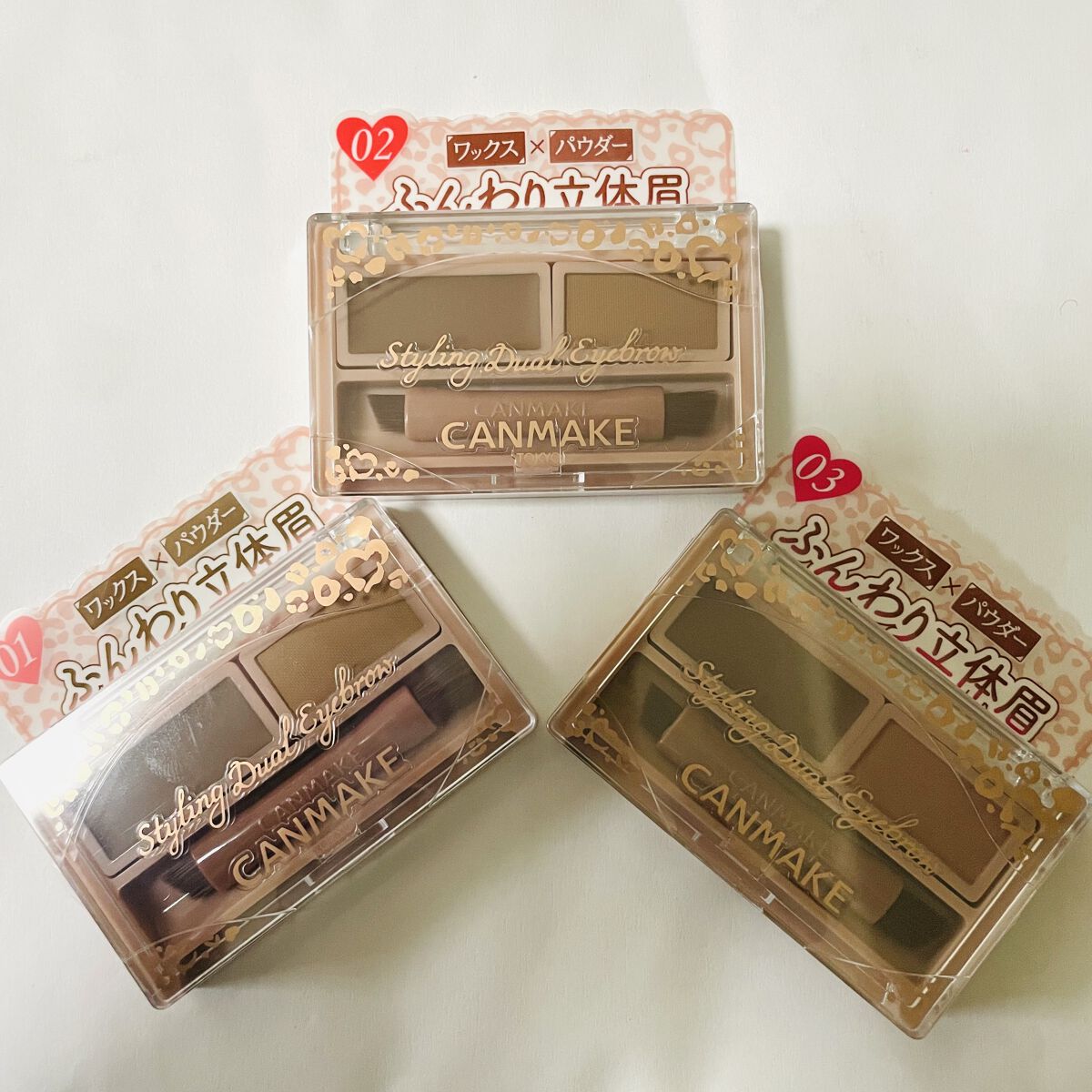 CANMAKEの「スタイリングデュアルアイブロウ」は、ワックスとパウダーの2つが1つになったアイブロウパレット。 パレット左側がワックスベースで、右側はパウダーベース。そして下側にブラシが付属しているという構成です。 ワックスを先に使い、そのうえからパウダーを重ねることで、密着感がUPするのが特徴! 水・汗・こすれにも強い設計です。 個人的には崩れにくさが抜群だと思っていて、朝メイクをして夕方になっても、ほとんど発色が変わらない点が使いやすいなと思っていました。