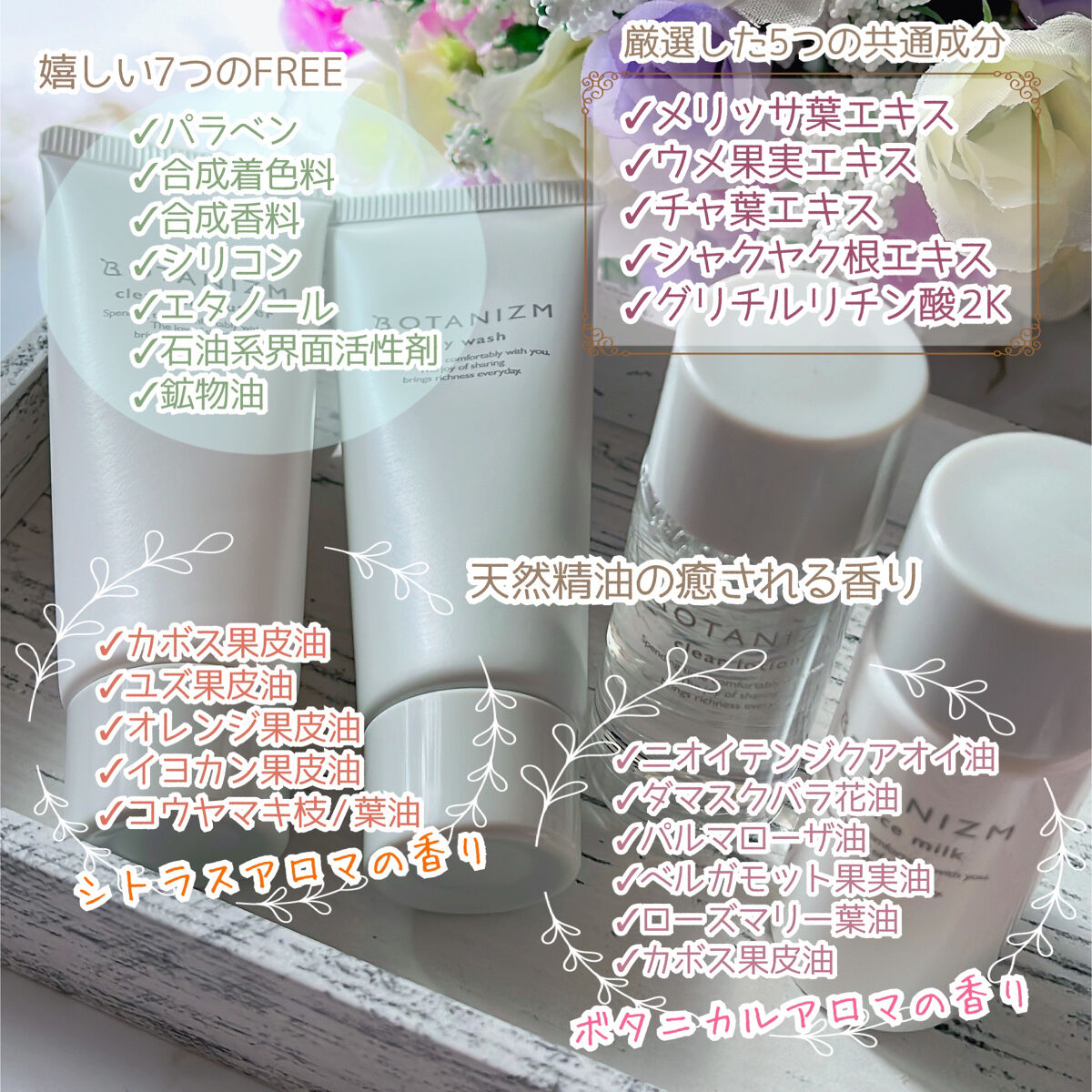 - BOTANIZMのスキンケアをお試しいただけるトライアルセットです。 【セット内容】 ・ボタニズム クレンジングバター20g ・ボタニズム クレイウォッシュ20g ・ボタニズム クリアローション20mL ・ボタニズム エッセンスミルク20mL