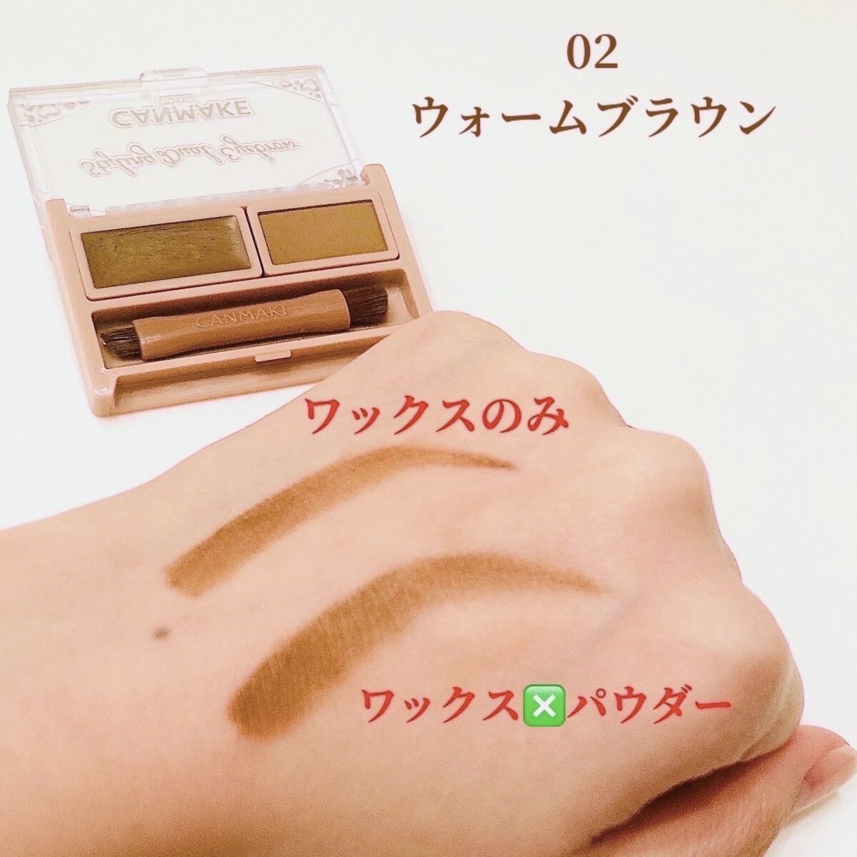 - ワックス×パウダー 異なる質感で作るふんわり立体眉 ワックスベースとパウダーベース、2つの異なる質感・発色を重ねることで、 絶妙なニュアンスを生み出しまるで本物の眉のような仕上がりに。 ワックスベースの上にパウダーベースを重ねることで、密着力がUP! メイクしたての仕上がりをキープできます! ◆ワックスベース◆ しっかりと発色する濃いめのカラーは、眉毛の隙間を埋めつつ眉の形を整えます。 ワックスなのにベタつかず、毛の立ち上がりをしっかりキープ。毛流れを感じる眉に仕上がります。 ★伸びが良くムラになりにくいため、初心者さんでも描きやすい! ◆パウダーベース◆ ふんわりと発色する淡めのカラーは、眉に奥行きが出て、立体的に仕上がります。