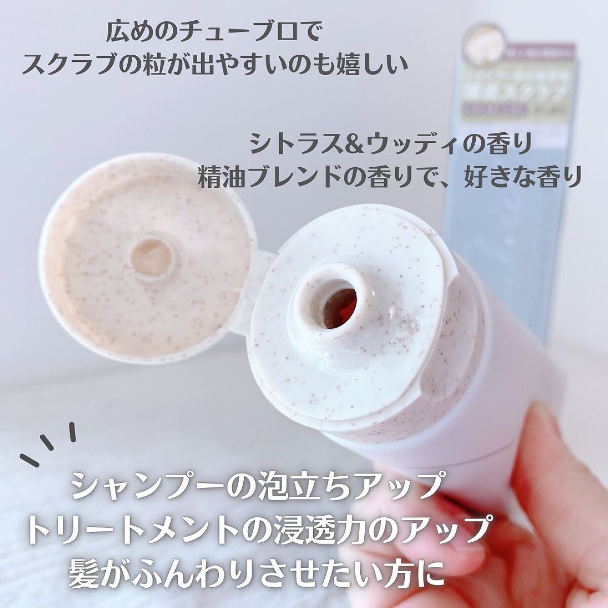 - <シャンプー前の新習慣、頭皮スクラブ>シャンプーでは落としきれない毛穴汚れや皮脂を取り除き、ニオイをケアする頭皮スクラブ。粒の大きさが異なる2種のソルトスクラブを配合。マッサージ効果により、こり固まった頭皮を柔らかくほぐします。フレッシュで心地よいシトラス&ウッディの香り。 ●天然由来保湿オイル配合●チューブタイプ
