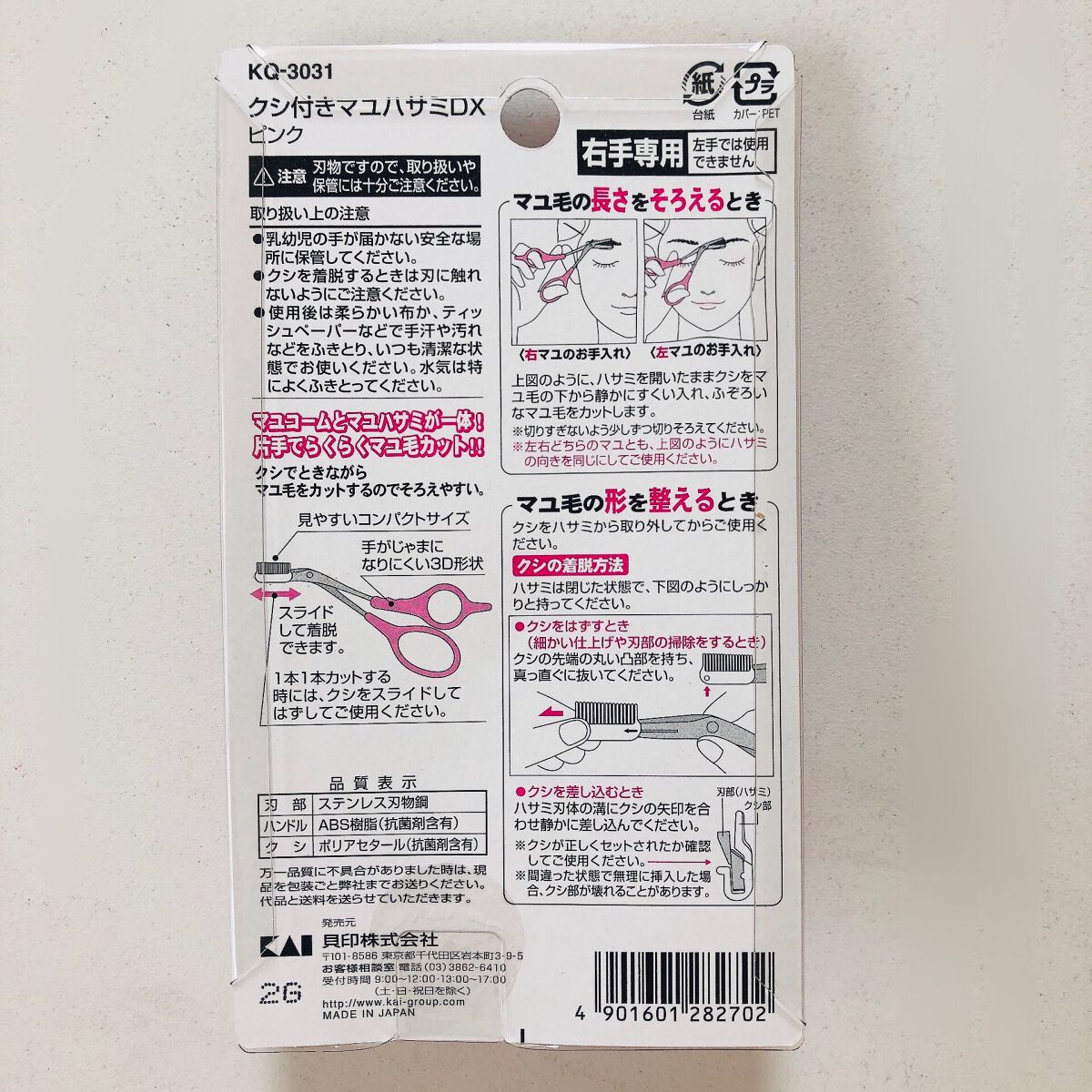 貝印クシ付きマユハサミDX♡クシ付きでクシからはみ出た眉毛をカットするだけで綺麗な仕上がりに✨♡穴の大きさが指に合わせて違っていて持ちやすい♡クシはつけ外しが簡単!今まで別の眉ハサミを持っていましたが、眉毛が上手く切れず、切りすぎることもしば...