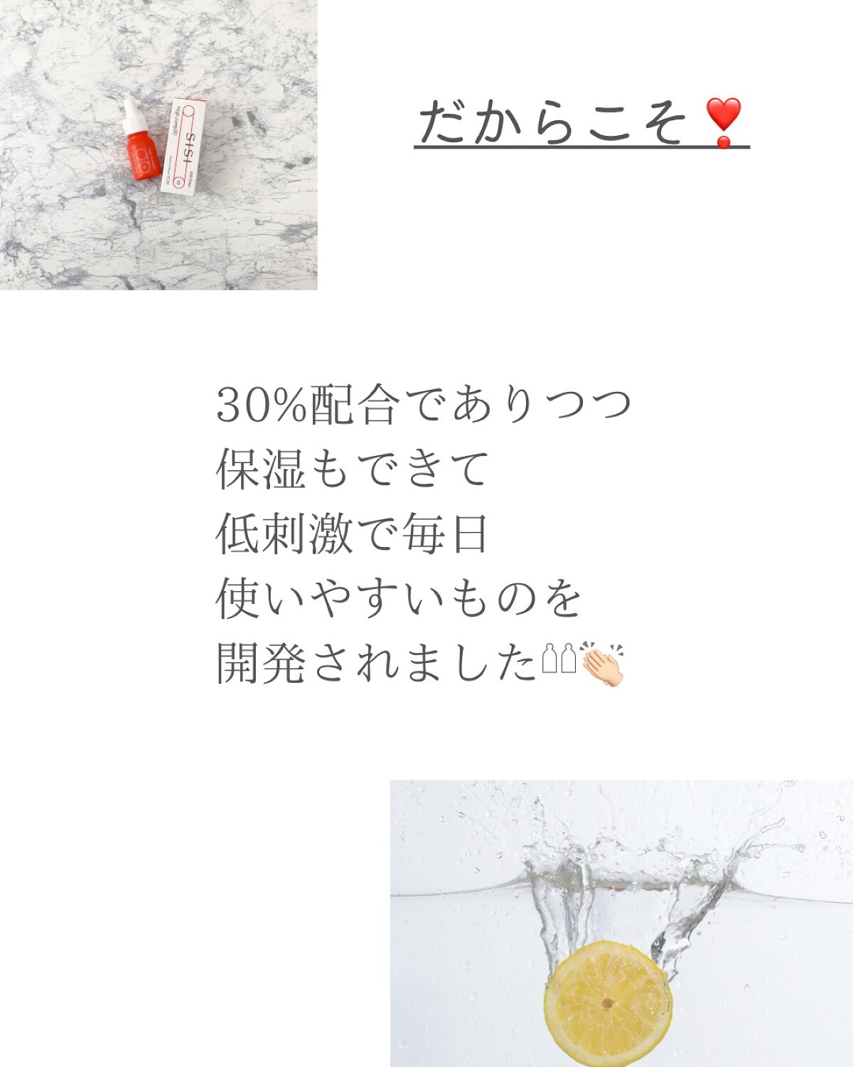- 美肌のために欠かせないビタミンC。 化粧品に安定配合できる誘導体であり、かつしっとりとなめらかなテクスチャー、優しい使用感を実現した新保湿型ビタミンC誘導体*1を30%と高濃度に配合した美容液です。 さらにSISIが誇る機能性ローズエキス・サイエンスローズ*2、ビタミンCと相性の良いナイアシンアミドと組み合わせ、ビタミンCの魅力を引き立てる独自処方に仕上げました。 乾燥、キメ、毛穴、ハリ、乾燥によるくすみといった肌悩みを抱えるすべての方に。 *1 3-グリセリルアスコルビン酸(整肌) *2 Rosality:ロザリティ(ダマスクバラ花水、ダマスクバラ花油):保湿成分 〈10mL〉新価格 旧価格4,378円(税込) 新価格2,970円(税込)好評発売中 ※2023年10月11日より価格変更