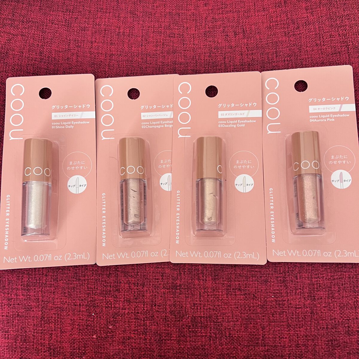 - <01 シャインディリー> 水、エタノール、グリセリン、ホウケイ酸(Ca/Al)、PET、PVP、(エチレン/VA)コポリマー、フェノキシエタノール、カルボマー、AMP、ガラス、酸化チタン、クロルフェネシン、ポリウレタン-11、Al、合成フルオロフロゴパイト、酸化スズ、酸化鉄 <02 シャンパンページュ> 水、エタノール、ホウケイ酸(Ca/Al)、グリセリン、マイカ、PVP、合成フルオロフロゴパイト、酸化チタン、フェノキシエタノール、酸化鉄、カルボマー、AMP、クロルフェネシン、酸化スズ <03 ダズリンゴールド> 水、エタノール、ホウケイ酸(Ca/Al)、グリセリン、PVP、合成フルオロフロゴパイト、PET、フェノキシエタノール、酸化チタン、カルボマー、AMP、マイカ、(エチレン/VA)コポリマー、ポリウレタン-11、クロルフェネシン、酸化鉄、酸化スズ、Al <04 オーロラピンク> 水、エタノール、PET、グリセリン、ホウケイ酸(Ca/Al)、PVP、フェノキシエタノール、カルボマー、AMP、クロルフェネシン、酸化チタン、マイカ、(エチレン/VA)コポリマー、ポリウレタン-11、酸化鉄、Al、酸化スズ