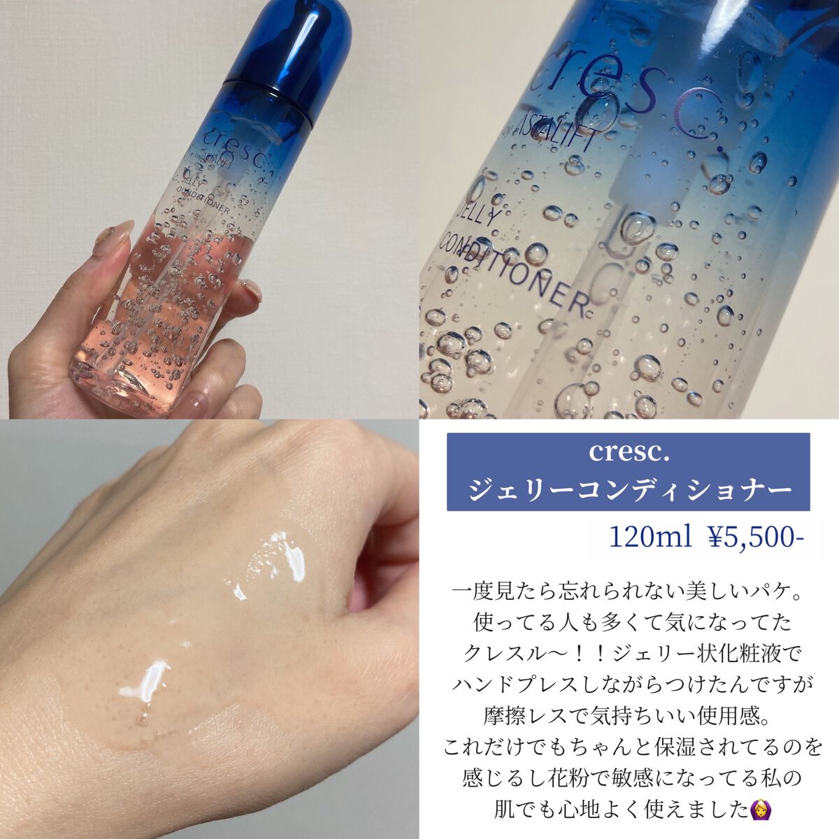 ジェリーコンディショナーセラミド*がたっぷり配合されたこのクレスクです。*セラミドEOP、セラミドNP、セラミドAP(整肌成分)ジェリー状の化粧液で化粧液の中にキラキラの気泡が凄く綺麗✨出したときはとろっとしたジェリー状ですが、肌に広げるとみ...