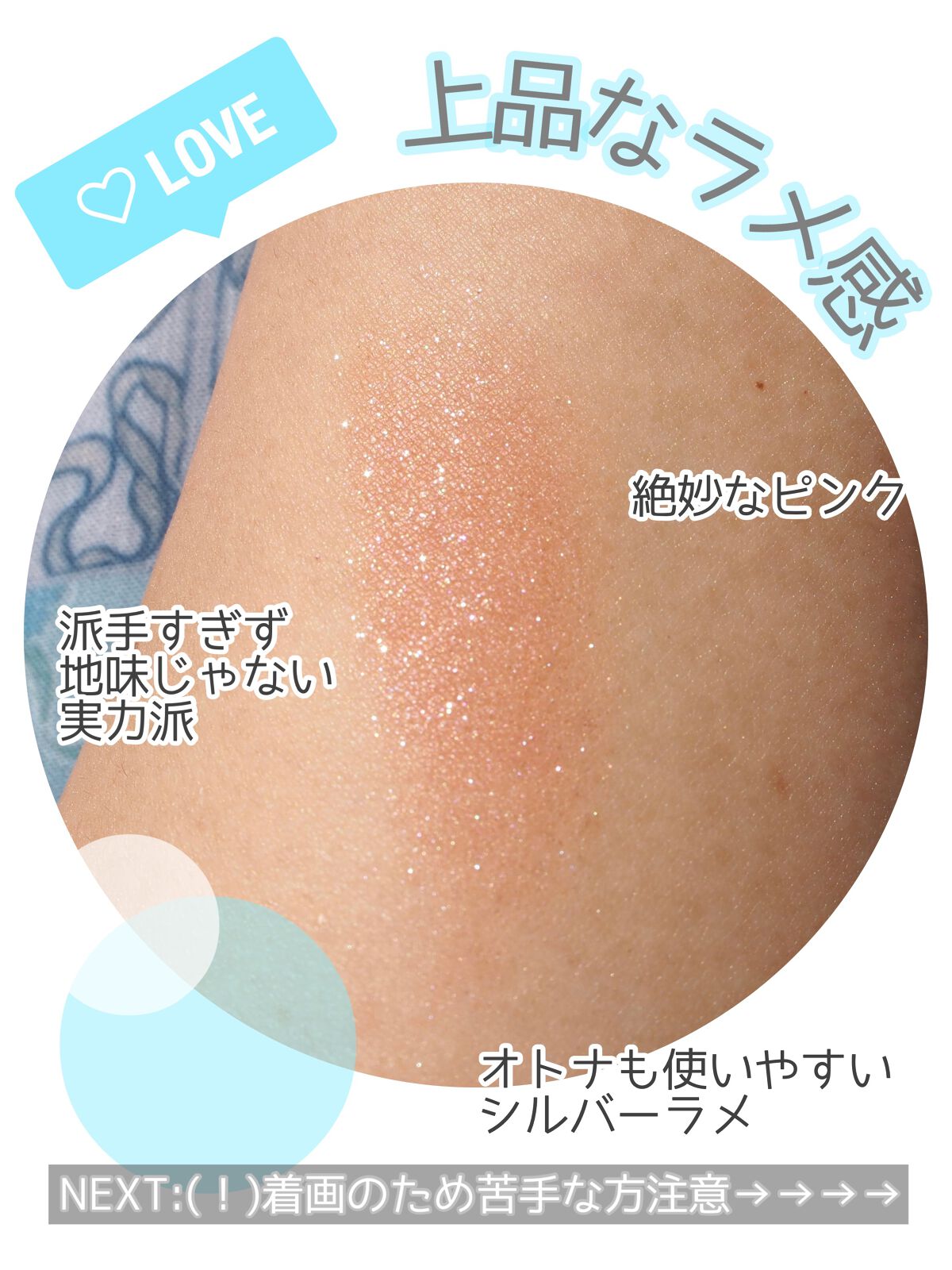 アイドル感満載の青みパステルピンク 多色ラメがかわいいいいいい! シピシピと変わらず高密着🙆♀️ この青み系のパステルピンクって 絶妙にアイドルっぽいというか姫っぽいというか 女の子〜!って感じがしてときめきますよね💕 多色ラメがたっぷり入ってて めちゃめちゃキラキラします🥺 ベースが青白っぽいですが、色味が強すぎないので PC問わず使えると思います🙆♀️ ピンクメイクがいちばん合いそうだけど 薄ピンクで目元に馴染むので ブラウンメイクのアクセントにも良さそう!