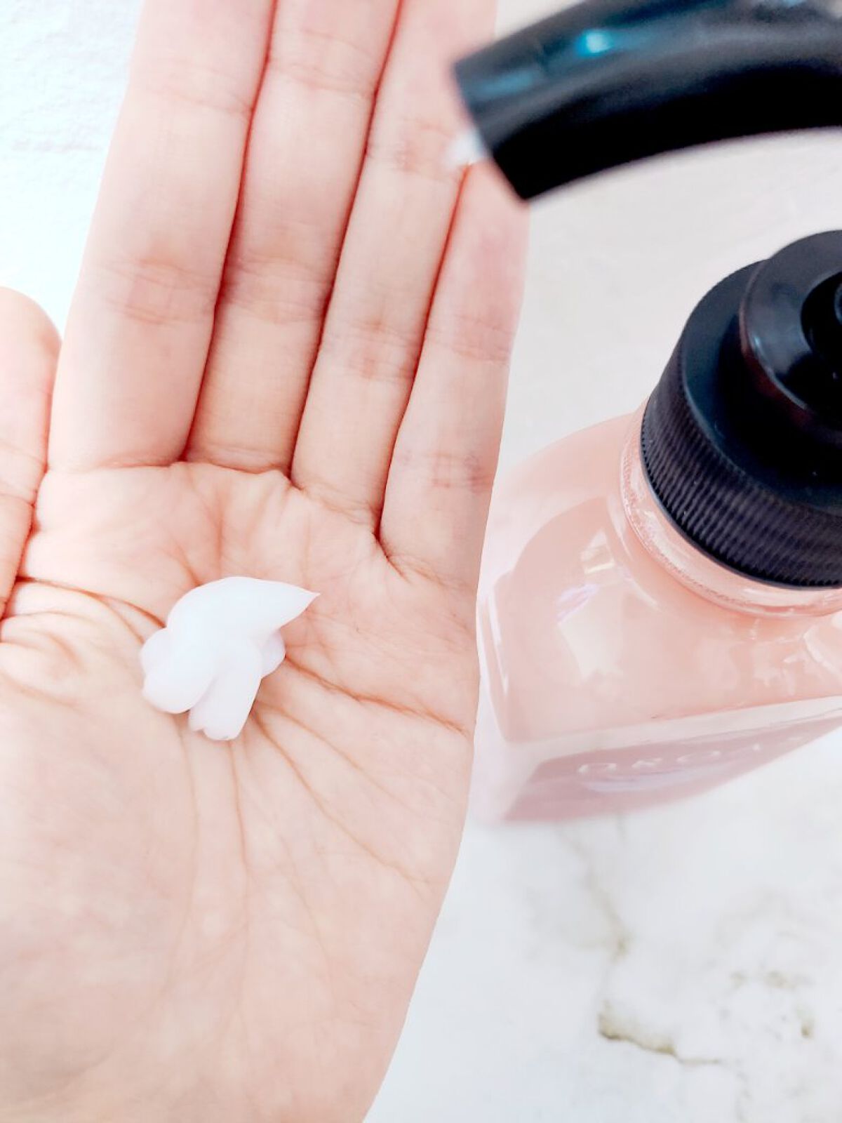 | ジェルのようなみずみずしいテクスチャーのシャンプーで、髪に「塗り広げて」から泡立てて使います。 | 詳細を見る | ||