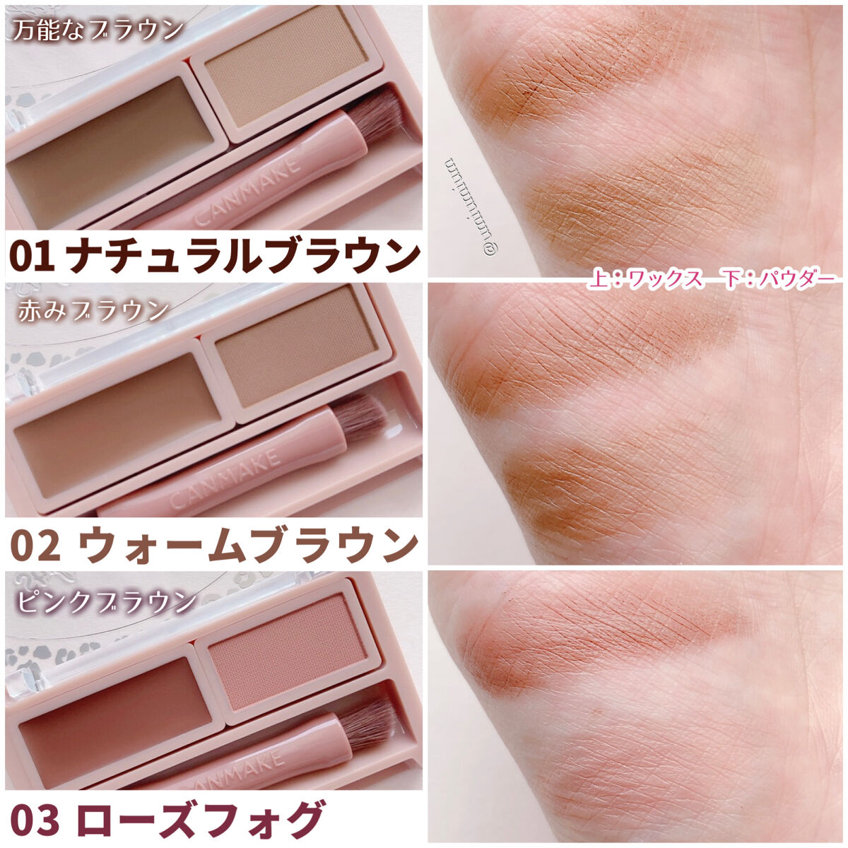 ワックスとパウダーの2つの質感・発色がセットされた キャンメイクのアイブロウ♡ 「04 クラウディモーヴ」はくすみっぽいニュアンスカラー。 ほんのり彩度を落とした秋メイクにピッタリの雰囲気に思った♡ ペンシルとブロウマスカラを重ねるとすんごく好みの仕上がり🥹