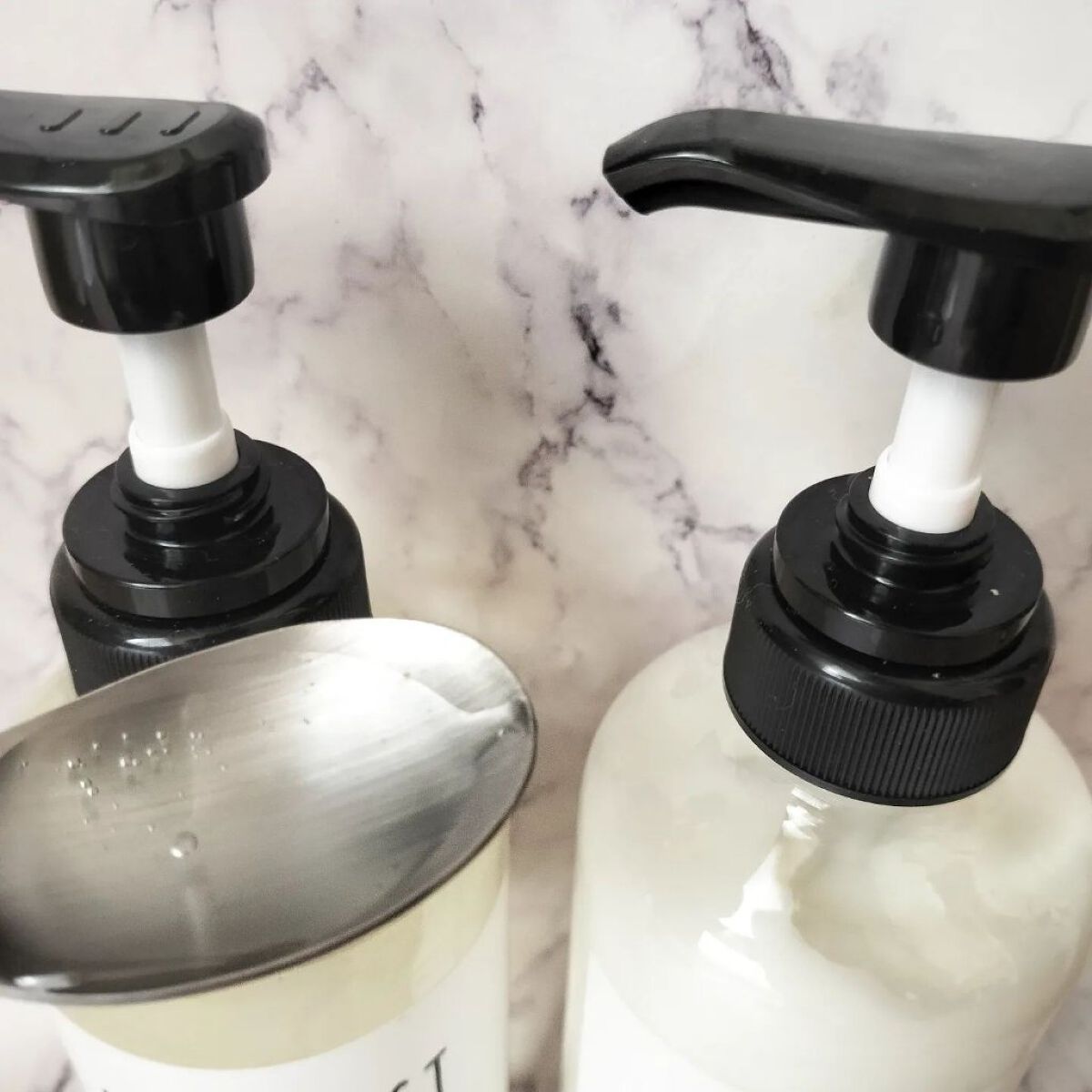 両方とも内容量は400gで容器は一般的なシャンプーと比べるとやや小さめです。 四角いので場所を取らないところがありがたいですね😊 シャンプーにはポンプの上部と本体の側面に凸凹した目印がついているので触って判断する感じになりそうです。 シャンプーはかなりサラサラ。 油断すると手からこぼすので一気に出すのは多くても2プッシュ程度がおすすめです✨ トリートメントはけっこう緩めなのでこってりしたトリートメントがお好きな方は物足りないかも。 しっかり髪の水気を切ってから使用することをおすすめします😊 香りはどちらも「森林浴をしているような、草木とリラックスハーブの香り」 ウッディな落ち着きのある香りをイメージして使用しましたがどちらかというとミントっぽい爽やかなハーブの香り。甘さはほぼなくてすっきりした香りなのでリラックスハーブというよりはリフレッシュハーブな印象です。