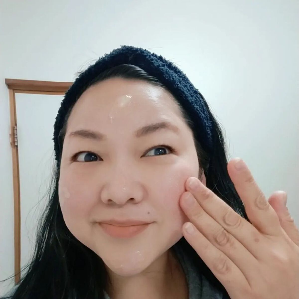 透明感とみずみずしさが、感じられるデザインそのままのテクスチャーです。 500円硬貨大をコットンに含ませ、お肌に馴染ませると、ベタベタしない、本当にサラサラした【水】が感じられます。 肌に馴染み、お肌がぷるぷるとしたイメージで、ずっと自分の肌を触りたくなる良い感触(ㆁᴗㆁ✿) 紫外線を浴び、ピリつく肌にもエアコンで乾燥した肌にも、優しく潤うのがお気に入りっ。 テカリやすく、皮脂過多な夫も気に入って使っていますよ。