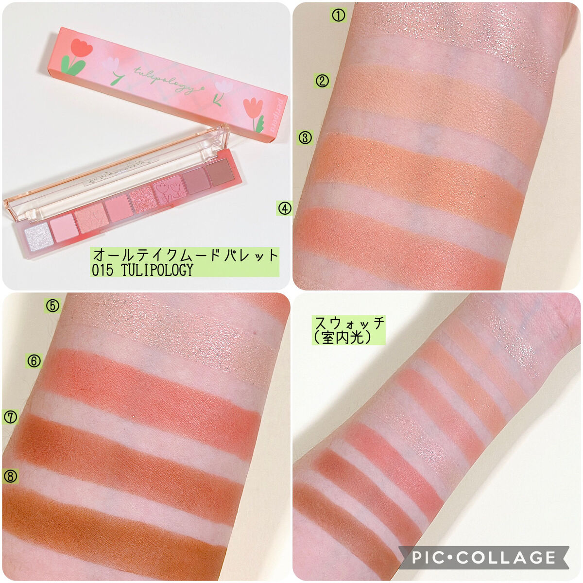 マットはかなりくすんだ色で、暗めのメイクに仕上がりがちに🤎 ツヤ感が大事だと言われるイエベ春でも、スモーキーメイク出来るんだ…!と思わせてくれたパレット。 愛して止まないミルクラテ、絶妙な柔らかベージュに透明感たっぷりのラメ✨️ 全色ラメ入りですが、真ん中2色のくすみと黄みが強く、どんよりした目元に…🥲 コーラルは大好きなんですが、このパレットは3滴白みを足したような色で、発色も弱くまぶたにも乗りづらく、かなり色白さんでないと使えない気がします…🥲 手持ちの中で1番黄み強いですが、1番完成度の高いです💕