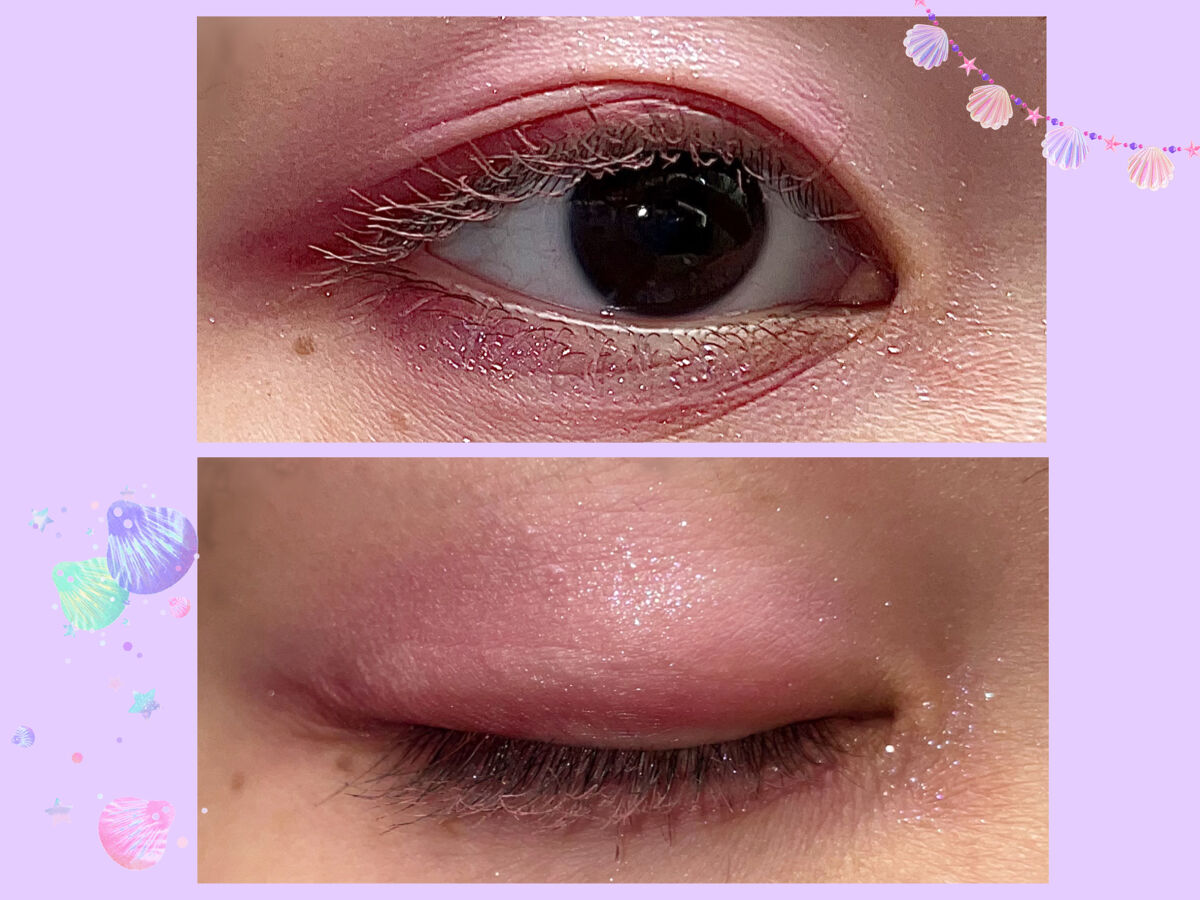 パンチのあるビジュ!目を惹く大粒ラメ! ブラックというよりもシアーパープル寄りのお色味で、 唇に乗せても浮かずにデイリー使いが出来ちゃいます✨ この1本で何通りも印象の違うメイクができます…! 暗めパープル寄りのお色味なので、 淡いブラウンやピンクなどの少し明るめな アイシャドウに合うかと思います!👀 マスクがだんだんと取れるようになり、 夏に近づいてリップメイクが映える時期☀️