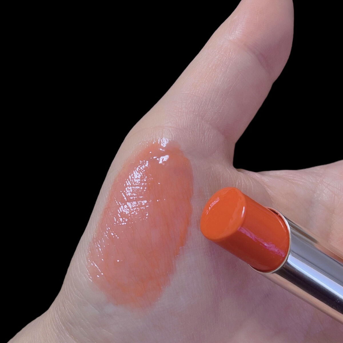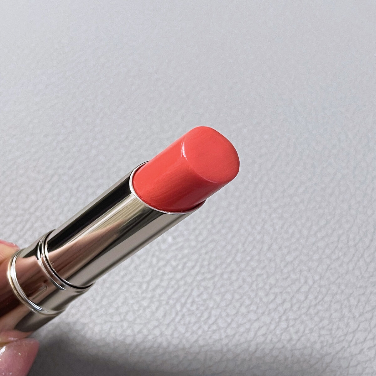 多幸感あふれるクリアなコーラル🩷 特に時間が経つと蛍光感がでてきちゃう。 THEピンクのリップを求めている人にピッタリ! ティッシュオフしても若干色は残ってる! おすすめの塗り方は、いつもよりも少し濃いめに塗ってから、ティッシュオフ!