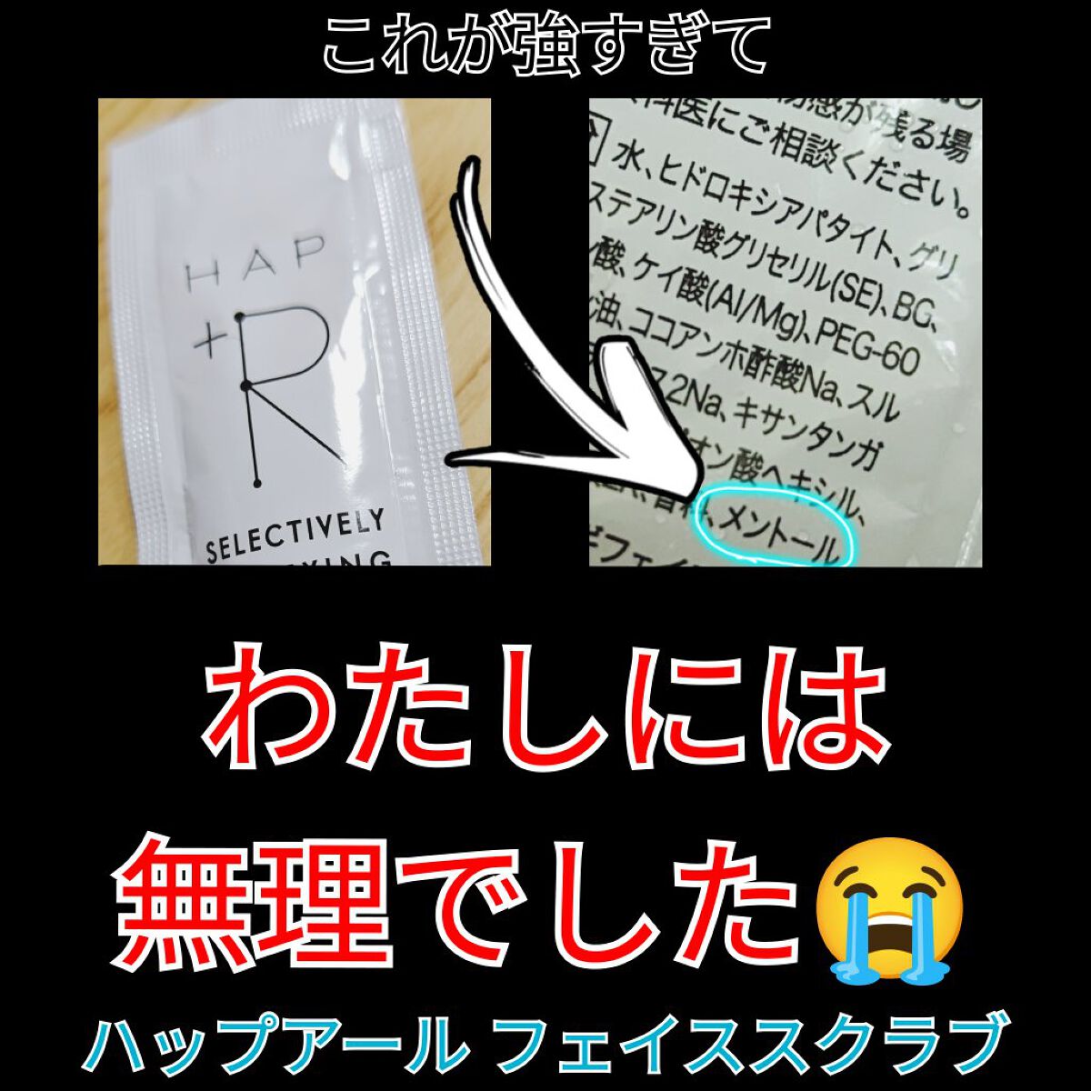 HAP+R(ハップアール)フェイススクラブ100g¥2,200スクラブ洗顔料です。洗顔料なので工程も増えず、手軽に使うことができます。ツブツブが入っています。お風呂の排水溝を掃除した時にツブツブが少し残っていました。夏に気持ち良いスーッとしそ...