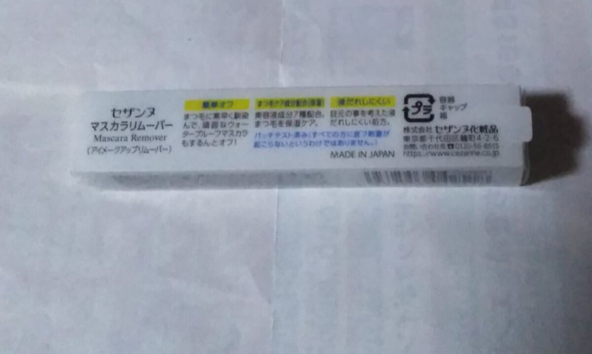 - まつ毛に素早く馴染んで、頑固なウォータープルーフマスカラもするんと落とせます。 セザンヌのウォータープルーフマスカラとフィルムタイプ(お湯オフタイプ)のマスカラ全てに使用できます。 目元のことを考えた液だれしにくい処方。 美容液成分7種(ユズ果実エキス、パンテノール、ビオチノイルトリペプチド-1、ウメ果実エキス、ラウロイルグルタミン酸ジ(フィトステリル/オクチルドデシル)、アカヤジオウ根エキス、トウキンセンカ花エキス)配合。 まつ毛にたっぷり塗れる幅広コームを採用。