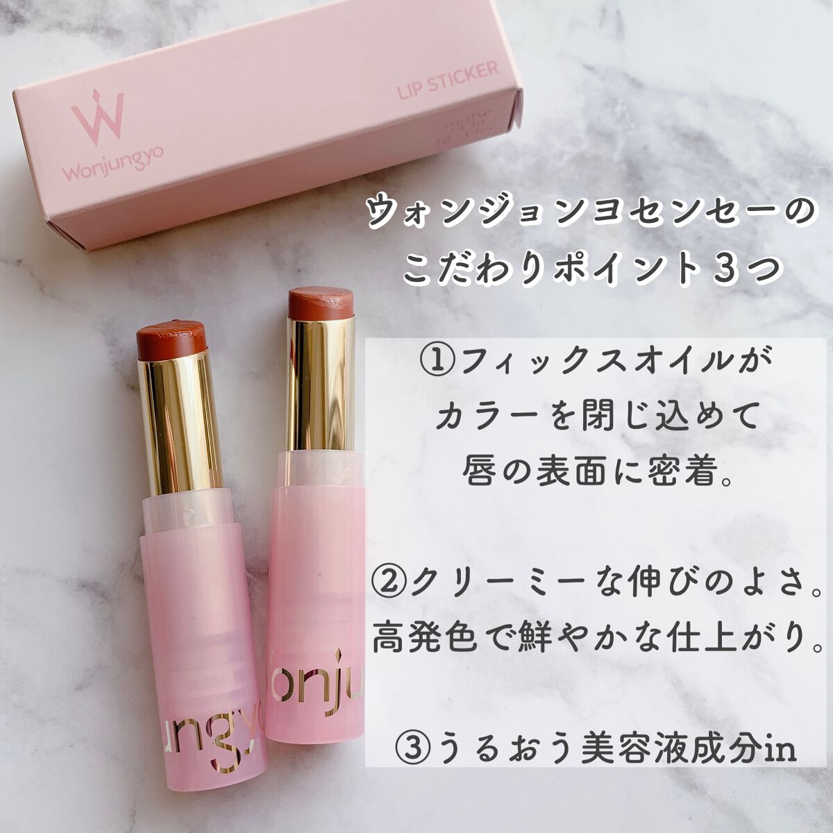 最近の持ち歩きリップは、ウォンジョンヨリップステッカーです💋TWICEの専属メイクアップアーティスト、涙袋メイクの第一人者“ウォン・ジョンヨ”が監修とあり、人気のコスメです✨韓国コスメブランド「Wonjungyo」10月より発売開始されました...