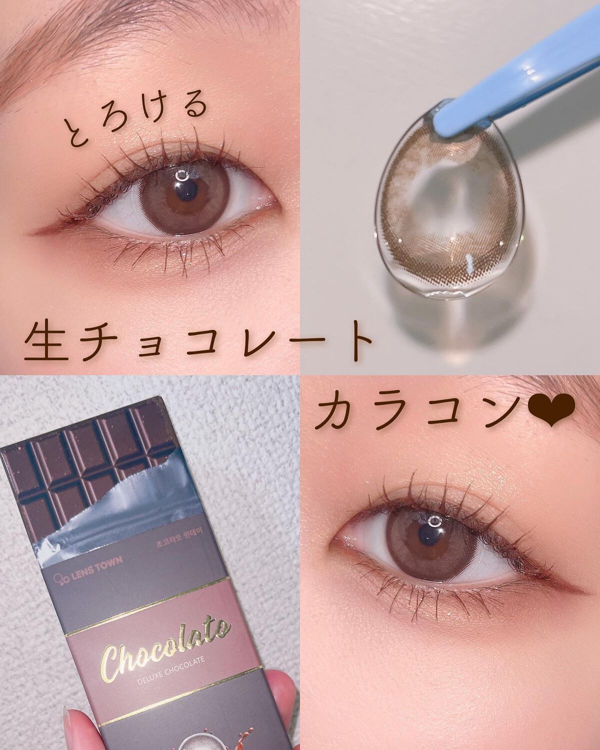可愛くて優しい瞳を演出してくれます🫶🏼💓 甘いチョコブラウン🥰🍫 真ん中ほどよいベージュブラウンで、瞳をキラキラ見せてくれるよ! 最近色を使わない、ラメを使わない、みたいなナチュラルメイクが流行ってるし、こうゆう甘くてちょい盛りのレンズってピッタリだと思う😊