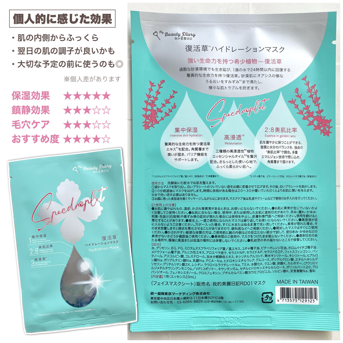 我的美麗日記 復活草ハイドレーションマスク | 748円 |