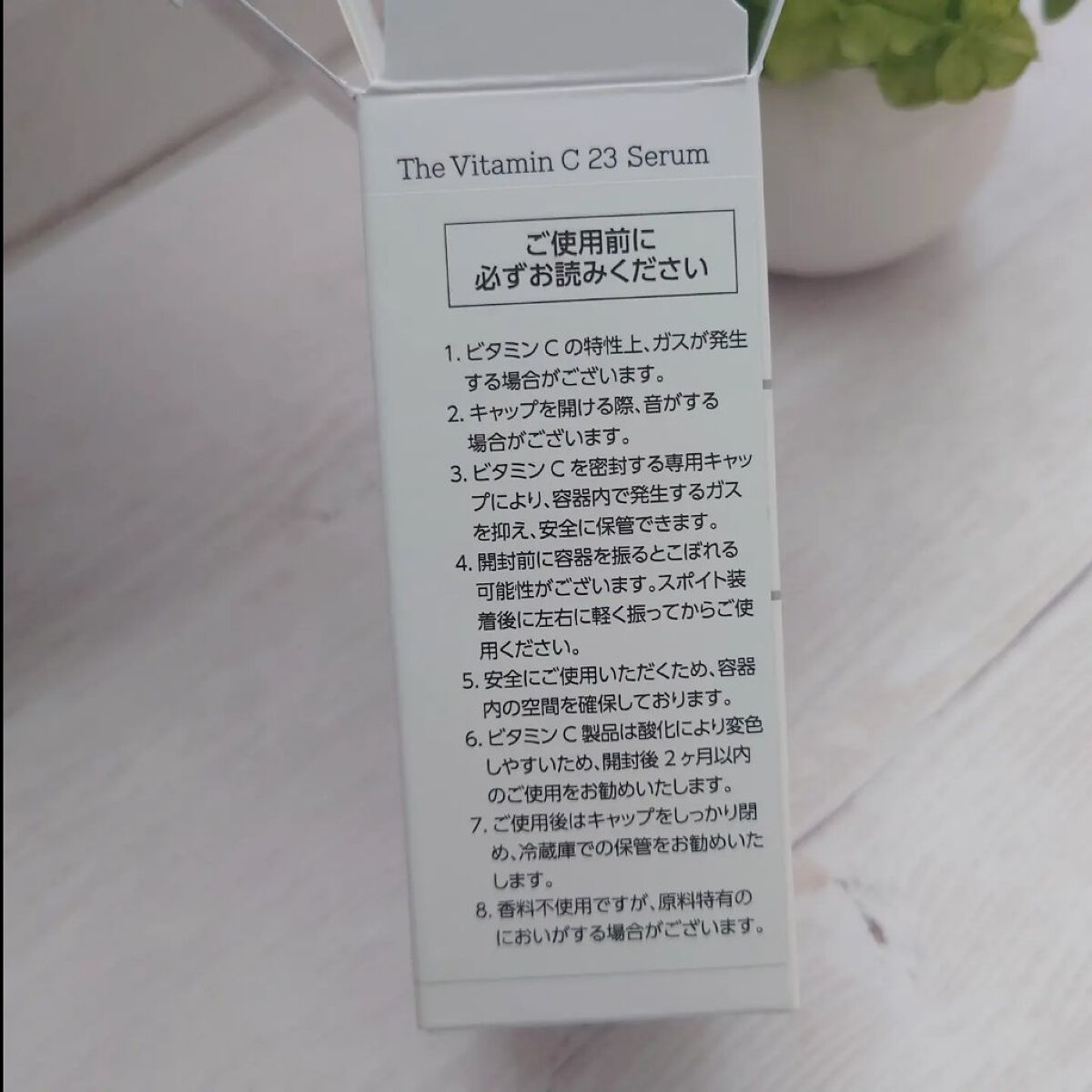 - #乾燥によるくすみケア #肌透明感 ◎日本にて2022年発売から10か月間で23万個販売突破 ◎ビタミンCなんと23%配合のセラムで乾燥によるくすみの保湿対策から透明感ケアまで! ◎保湿成分として、ヒアルロン酸/アラントインも配合されており・保湿ケアもしっかり! ◎乾燥や紫外線など外的ストレスに悩む肌にうるおい ・「敏感肌対象一次刺激テスト」済み* ・「皮膚ー次刺激テスト」済み* 【こんな方におすすめ】 ・乾燥によるくすみがお悩みの方 ・ビタミン保湿ケアを試してみたい方 ・肌ケアをしっかり行いたい方 ・透明感あふれる肌を演出したい方 【注意事項】 ・購買後すぐにご使用していただき、縦で冷蔵保管(3-10℃)してください。 ・ビタミンC製品は酸化により変色しやす いため開封後、2か月以内のご使用をお 勧めします。 ・本製品を昼間に使用する場合は必ず日焼け止めを塗ってください。 ・香料を配合していないため原料固有の香りが感じられる可能性がございます。 * )すべての方にアレルギーや皮ふ刺激がおきないわけではありません。
