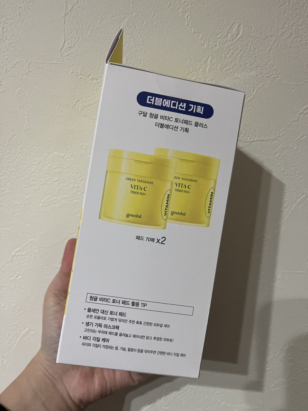 #goodal#グリーンタンジェリンビタCダークスポットケアパッドくすみの無い肌を目指したいならコレ💛✨️くすみはもちろん、肌トーンまでスッキリする神トナパ✍🏻!!使用感が本当にさっぱりしていて、油分感無し‼️エンボス面とスムース面で出来てい...