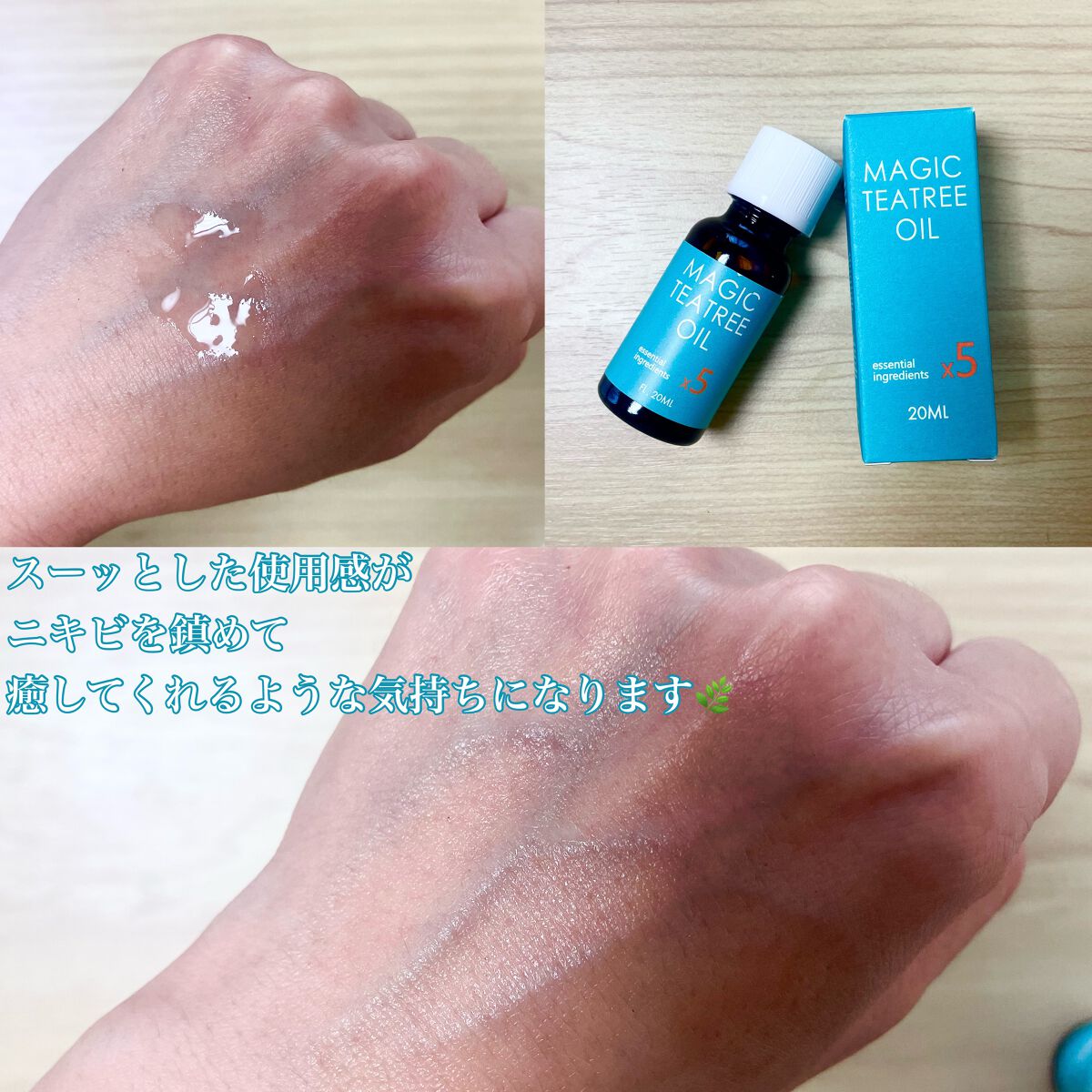 - マジックティーツリーオイルは、乾燥や皮脂による肌悩みをスポットケアし、整える商品です。ブラン代表の整肌成分である4‐テルピネオールで肌トラブルの原因の1つである皮脂を素早くケアします。 【このような方におススメ】 ✔乾燥による肌悩みが気になる方 ✔過度な皮脂と油分が気になる方 ✔べたつきのないスキンケアを探されている方 ✔肌荒れを防ぎたい方 ✔年齢性別肌タイプ関係なく使用できる商品を探されている方 【使用方法】 ①洗顔後、コットンに適量を取り、軽くふき取った後馴染ませます。 ②気になる部分の肌をきれいに洗顔後、トナー→クリームの順でお肌を整えます。 ③綿棒に1~2滴落とし、気になる部分に塗ります。 経過を見て朝晩のスキンケアの最後の段階に塗ることを繰り返します。