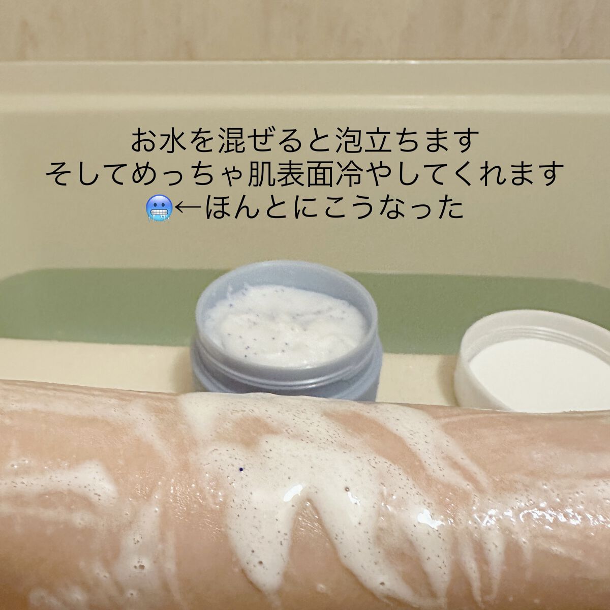 - ひんやり心地よく角質&洗浄ケアができ、すっきりつるつるな肌に洗い上げる、マイルドな冷感処方のボディ用スクラブ洗浄料です。海塩 ※1 と水分を保持するシュガー ※2 のWスクラブ配合で、くすみ ※3 やざらつきが気になる肌の角質をマイルドに落とします。ぬるま湯を少しずつ加えてマッサージしながら肌にのばすと、クリーミィーな泡状になり、角質ケアと同時に洗浄ケアができます。ビタミン ※4 オイルカプセルを含む厳選 ※5 した美容保湿成分配合。-5℃のひんやり体感 ※6 で暑い季節のバスタイムにもおすすめです。 ※1 洗浄補助成分 ※2 スクロース(洗浄補助成分) ※3 古い角質による ※4 酢酸トコフェロール、パルミチン酸レチノール(全て整肌成分) ※5 当社基準 ※6 肌にのせる前の製品と肌のおおよその温度差(一定条件下における)