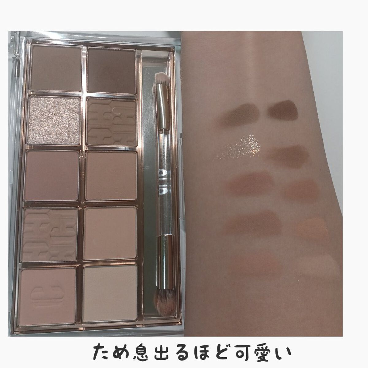ドンキで買ったCLIOラッキーバッグに入っていたアイシャドウパレット。 ヌードブラウン系のパレットでラメは一色のみ。 発色も良く、いい感じにグラデも作れて使いやすい♡