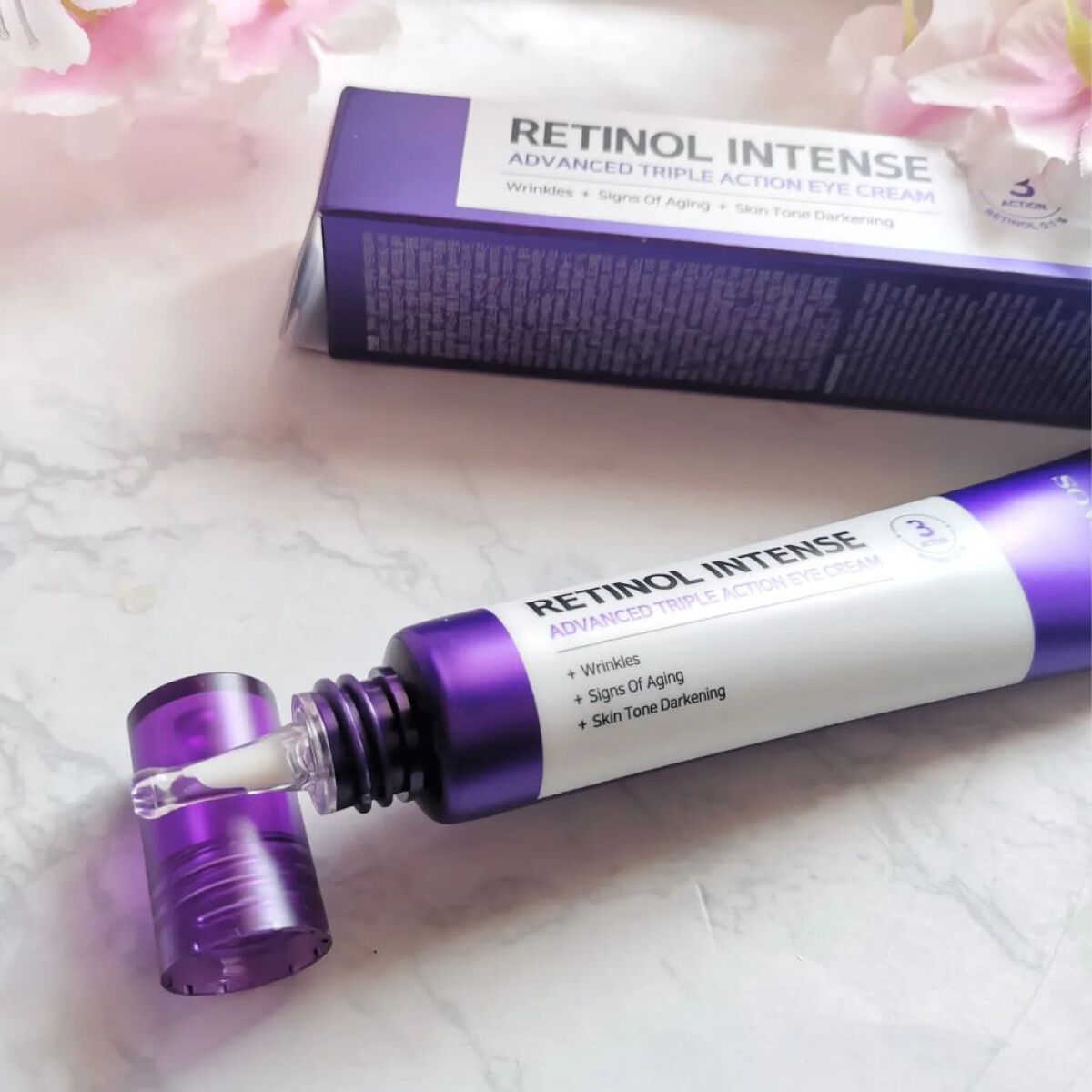 サムバイミーは、トラブル肌、敏感肌に注意を注いでいるスキンケアブランド☝️ そんなサムバイミーが作った、レチノール入りのアイクリームって👀⤴️⤴️ レチノール0.1%+グルタチオン配合で、レチノール入りなのに初心者でも使いやすい😆 クリーム色の、滑らかなクリーム状テクスチャー😌 チューブの先が細く、少量も出しやすいし目元ケアしやすい⤴️